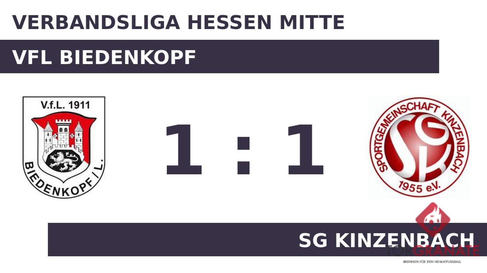 Im ersten Durchgang tasteten sich die beiden Mannschaften lediglich ab, Tore gab es nicht zu verzeichnen. Hakan Güngör brach für die SG Kinzenbach den Bann und markierte in der 64. Minute die Führung. Gelesen war die Messe für den VfL Biedenkopf noch nicht, als Saleh Hamud und Alessandro Gamma bei einem Doppelwechsel für Jan Niklas Runzheimer und Jonathan Gamarca auf das Feld kamen (81.). Maximilian Muth sicherte seiner Mannschaft kurz vor dem Abpfiff den Ausgleich, als er in der 86. Minute ins Schwarze traf. Mit dem Abpfiff des Referees Tim Rüppel (Zierenberg) trennten sich der VfL Biedenkopf und die SG Kinzenbach remis.