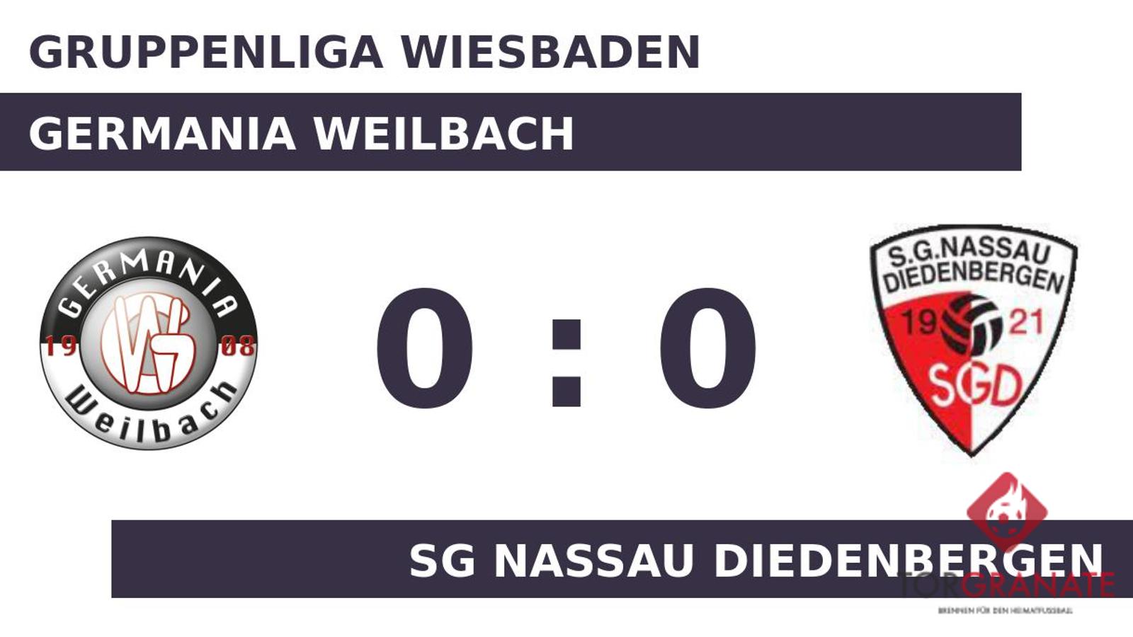 Anstelle von Karim Bouaoud war nach Wiederbeginn Justin Thieme für die Germania Weilbach im Spiel. Nach den ersten 45 Minuten ging es für das Heimteam und das Nassau Diedenbergen ohne Torerfolg in die Kabinen. Nachdem die erste Hälfte torlos über die Bühne gegangen war, hatten die Zuschauer zur Pause immerhin noch die Hoffnung auf Besserung. Doch am Ende brachte auch der zweite Spielabschnitt nichts Entscheidendes mit sich. Es blieb bei der Nullnummer.