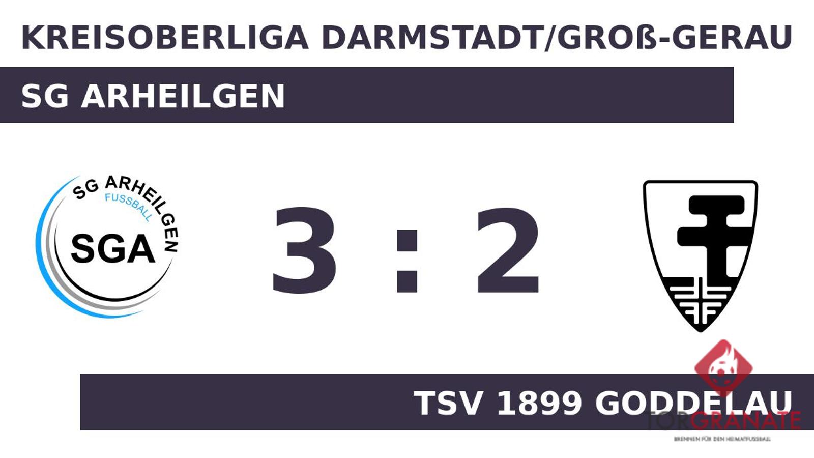Der Gastgeber ging durch Dimitri Nosow in der zwölften Minute in Führung. Jannek Bunzel, der von der Bank für Simon Pfaff kam, sollte für neue Impulse beim TSV 1899 Goddelau sorgen (32.). Für das 1:1 der Gäste zeichnete Jannik Singh verantwortlich (37.). Noch bevor es in die Halbzeit ging, war Bunzel mit dem 2:1 für das Schlusslicht zur Stelle (42.). Zur Pause wusste der TSV 1899 Goddelau eine hauchdünne Führung auf der Habenseite. Mit einem Wechsel – Pawel Kadir kam für Nabil Lamrabet – startete die SG Arheilgen in Durchgang zwei. Tim Zeising schockte den TSV 1899 Goddelau und drehte die Partie mit seinem Doppelpack für die SG Arheilgen (63./73.). Mit dem Schlusspfiff durch Schiedsrichter Clemens Riehl (Zwingenberg) siegte die SG Arheilgen gegen den TSV 1899 Goddelau.
