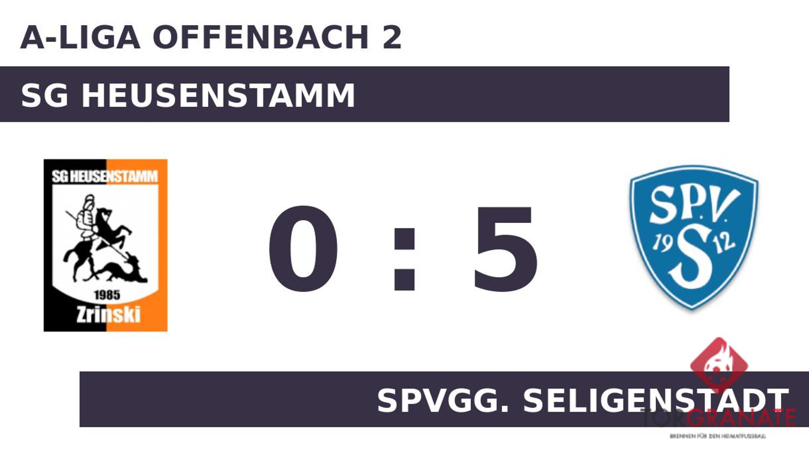 Yasin Sinan brachte die SG Heusenstamm in der 21. Minute ins Hintertreffen. Das Schlusslicht glich bis zum Halbzeitpfiff nicht mehr aus. Schließlich schickte der Unparteiische Emre Akyol (Gelnhausen) beide Teams mit der knappen Führung für die Spvgg. Seligenstadt in die Kabinen. Semir Arnautovic erhöhte für die Spvgg. Seligenstadt auf 2:0 (49.). Für ruhige Verhältnisse sorgte Marvin Gottschalk, als er das 3:0 für den Gast besorgte (66.). Für das 4:0 des Tabellenprimus sorgte Justin Dingler, der in Minute 81 zur Stelle war. Benjamin Arnautovic gelang in den Schlussminuten noch ein weiterer Treffer für die Spvgg. Seligenstadt (84.). Die Spvgg. Seligenstadt überrannte die SG Heusenstamm förmlich mit fünf Toren und fährt so mit einem verdienten Sieg in der Tasche nach Hause.