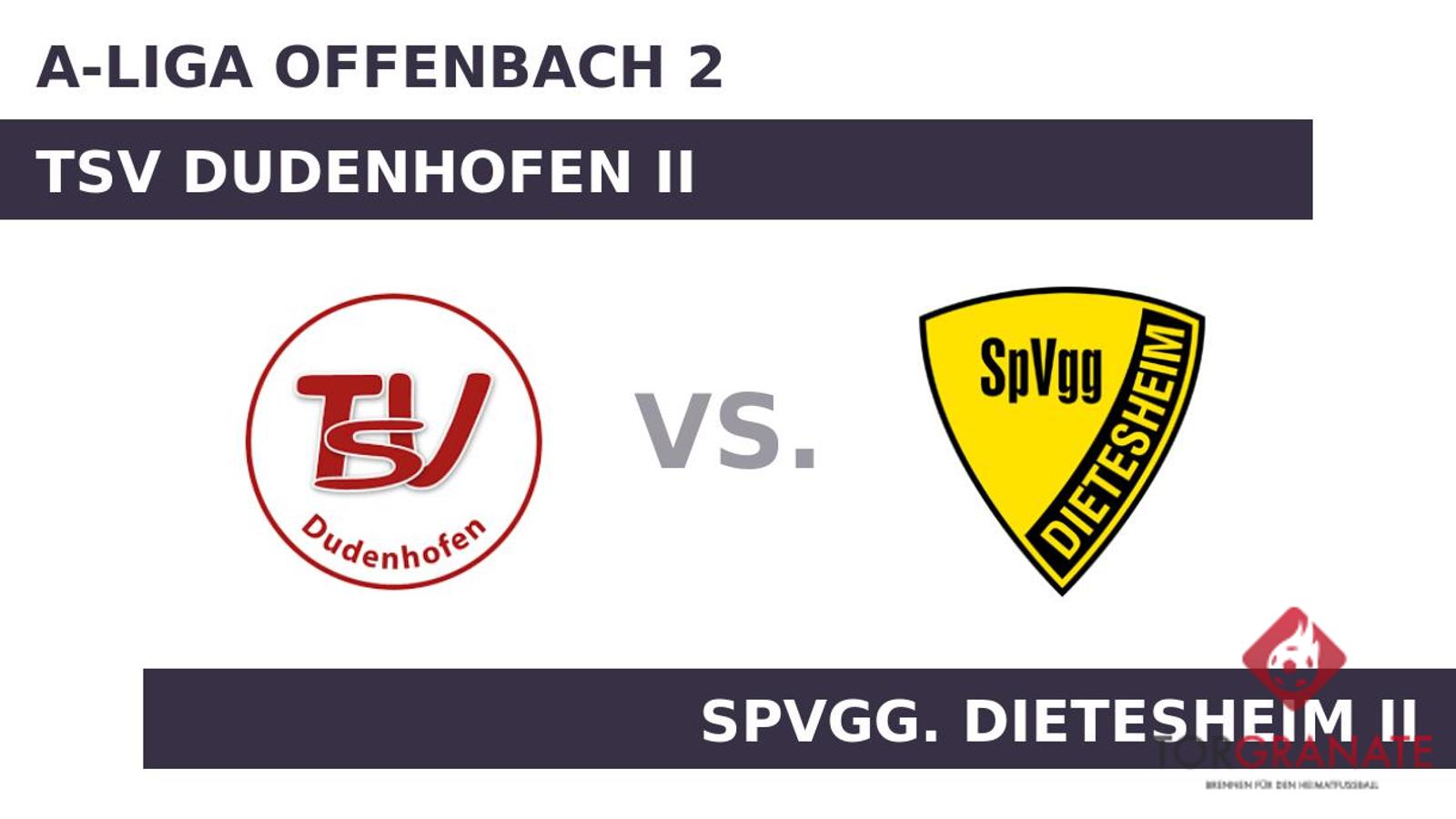 Diese Begegnung lässt auf Tore hoffen, auch wenn beide Mannschaften vor allem durch Gegentreffer auffallen. So griff die Spvgg. Dietesheim II bisher 15-mal ins eigene Netz. Dagegen hatte TSV Dudenhofen II bisher 19-mal das Nachsehen in dieser Saison. In der Tabelle liegen beide Teams mit drei Punkten Unterschied dicht beieinander.