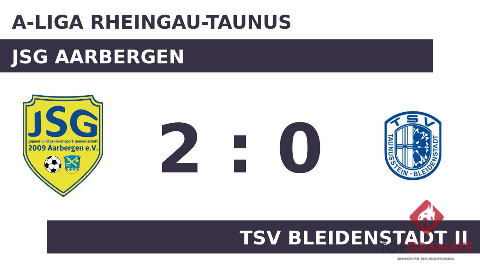 Christian Michel brachte sein Team in der 35. Minute nach vorn. Zur Pause behielt die JSG Aarbergen die Nase knapp vorn. Zum Seitenwechsel ersetzte Sven Heuser vom TSV Bleidenstadt II seinen Teamkameraden Max Kutschka. Nedim Divjan war es, der in der 64. Minute den Ball im Gehäuse des Gasts unterbrachte. Am Ende behielt die JSG Aarbergen gegen den TSV Bleidenstadt II die Oberhand.