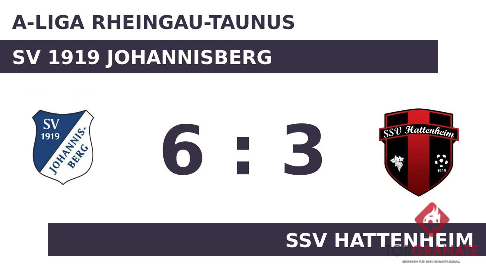 Tim Goretzko brachte den Ball zum 1:0 zugunsten der Gastgeber über die Linie (16.). In der 19. Minute brachte Benedikt Franz das Netz für den SV Johannisberg zum Zappeln. Lennart Rauth brachte den SV 1919 Johannisberg in ruhiges Fahrwasser, indem er das 3:0 erzielte (37.). Der tonangebende Stil des SV Johannisberg spiegelte sich in einer klaren Pausenführung wider. Goretzko gelang ein Doppelpack (54./58.), mit dem er das Ergebnis auf 5:0 hochschraubte. Mit zwei schnellen Treffern von Marc Koehler (69.) und Dennis Merten (75.) machte der SSV Hattenheim deutlich, dass mit diesem Angriff jederzeit zu rechnen ist. Goretzko führte sein Team heute beinahe im Alleingang zum Erfolg: Mit dem 6:2 war er schon das vierte Mal an diesem Tag erfolgreich (76.). Der SSV Hattenheim verkürzte den Rückstand in der 81. Minute durch einen Elfmeter von Christoph Merten auf 3:6. Ein starker Auftritt ermöglichte dem SV 1919 Johannisberg am Sonntag einen ungefährdeten Erfolg gegen den SSV Hattenheim.