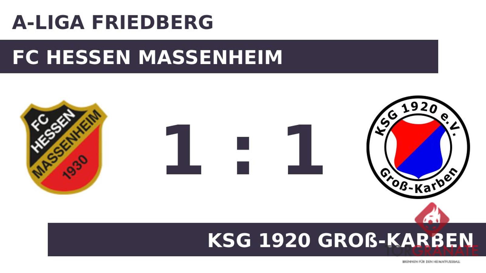 Nach den ersten 45 Minuten ging es für die Gastgeber und die KSG 1920 Groß-Karben ohne Torerfolg in die Kabinen. Agon Ademi brachte den Ball zum 1:0 zugunsten der KSG 1920 Groß-Karben über die Linie (52.). Kurz vor Ende der Partie war es Sascha Plagentz, der den FC Massenheim rettete und den Ausgleich markierte (88.). Am Ende stand es zwischen dem FC Hessen Massenheim und der KSG 1920 Groß-Karben pari.