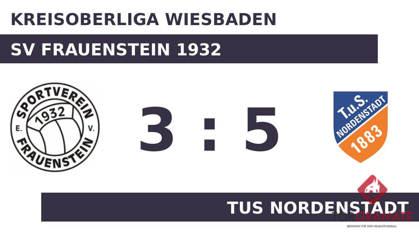 Auf die vermeintliche Siegerstraße brachte Leon Lavizar sein Team in der zwölften Minute. Der SV Frauenstein 1932 bejubelte noch das letzte Erfolgserlebnis, als Ashis Gurung für den Ausgleich sorgte (15.). Fabian Koch machte in der 19. Minute das 2:1 des Heimteams perfekt. Der TuS Nordenstadt zeigte sich unbeeindruckt und so drehten Leopold Krey (21.) und Gerit Lars Wintermeyer (28.) mit ihren Treffern das Spiel. Ohne dass sich am Stand noch etwas geändert hatte, verabschiedeten sich beide Mannschaften zur Pause in die Kabinen. Nach rund einer Stunde ging der Gast aufs Ganze. Zunächst vergrößerte Wintermeyer den Vorsprung des TuS Nordenstadt auf zwei Tore (62.). Wenig später erhöhte Erik Janocha nochmals und sorgte damit für die Vorentscheidung (64.). Kevin Blum verkürzte für den SV Frauenstein 1932 später in der 73. Minute auf 3:5. Mit dem Schlusspfiff durch den Referee siegte der TuS Nordenstadt gegen den SV Frauenstein 1932.