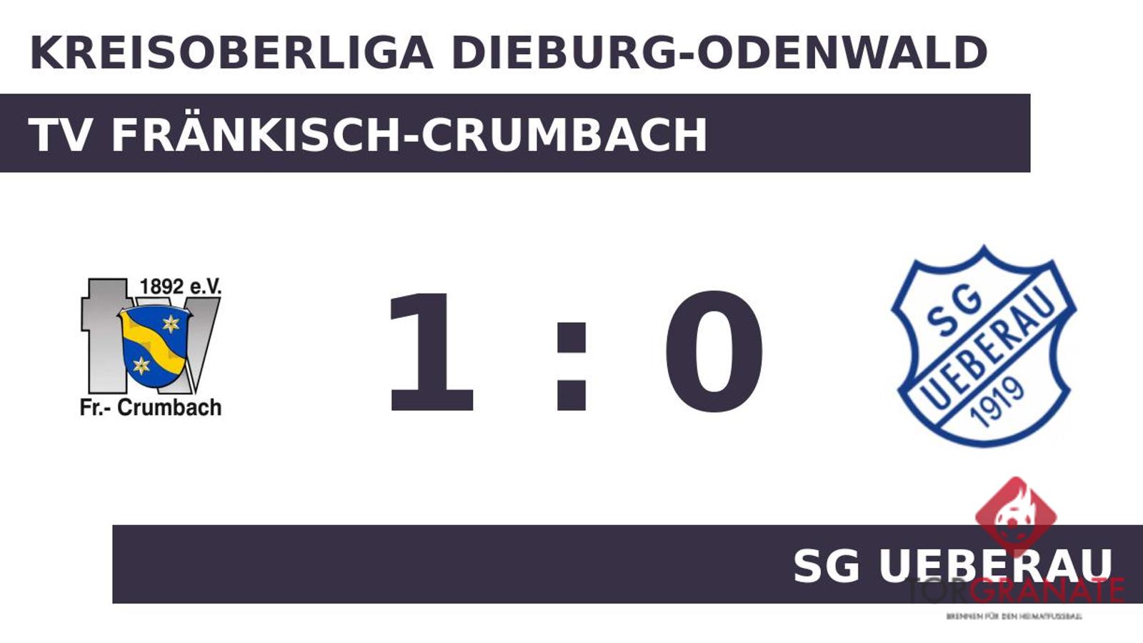 Der Unparteiische setzte mit dem Halbzeitpfiff dem torlosen Treiben auf dem Feld vorläufig ein Ende. In Durchgang zwei lief Christian Kunkel anstelle von Florian Geier für die SG Ueberau auf. Beim TV Fränkisch-Crumbach kam zu Beginn der zweiten Hälfte Abdullah Shahkhel für Till Seeger in die Partie. In der 68. Minute stellten die Gastgeber personell um: Per Doppelwechsel kamen Huseyin Yaman und Ibrahim Karakas auf den Platz und ersetzten Izudin Preljevic und Andreas Henschke. Lange verbuchte keine der Mannschaften ein Tor für sich, bis der TV Fr.-Crumbach in Minute 73 den Ball schließlich ins gegnerische Netz beförderte. Am Ende machte ein Tor den Unterschied zwischen dem TV Fränkisch-Crumbach und der SG Ueberau aus.