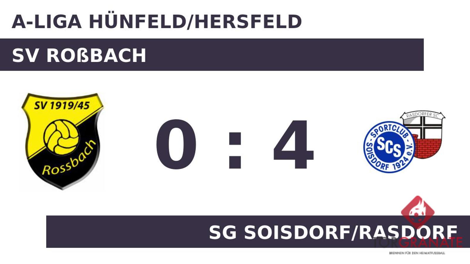 Nils Schuhmann brachte sein Team in der 16. Minute nach vorn. Die nächsten beiden Treffer waren einem Mann vorbehalten: Brian Ziegler schnürte einen Doppelpack (20./37.), sodass die SG Soisdorf/Rasdorf fortan mit 3:0 führte. Eigentlich war der SV Roßbach schon geschlagen, als Behzad Jafari das Leder zum 0:4 über die Linie beförderte (39.). Bis zum Schlusspfiff durch den Unparteiischen Johannes Hauke (Fulda) betrieb der SVR nach einem desolaten ersten Spielabschnitt in Halbzeit zwei Schadensbegrenzung und verhinderte eine noch höhere Pleite. Am Ende hieß es 4:0 zugunsten der SG Soisdorf/Rasdorf.