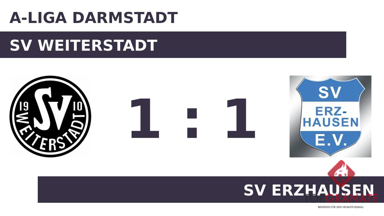 Der SV Weiterstadt erwischte einen Blitzstart ins Spiel. Mohammed Worku Mengestu traf in der dritten Minute zur frühen Führung. Zur Pause war die Heimmannschaft im Fahrwasser und verbuchte eine knappe Führung. In Durchgang zwei lief Luc Khiem Vuong anstelle von Niklas Raab für den SV Erzhausen auf. Für das 1:1 der Gäste zeichnete Levin Bozkurt verantwortlich (49.). Letzten Endes wurde im Aufeinandertreffen des SV Weiterstadt mit dem SV Erzhausen kein Sieger ermittelt.