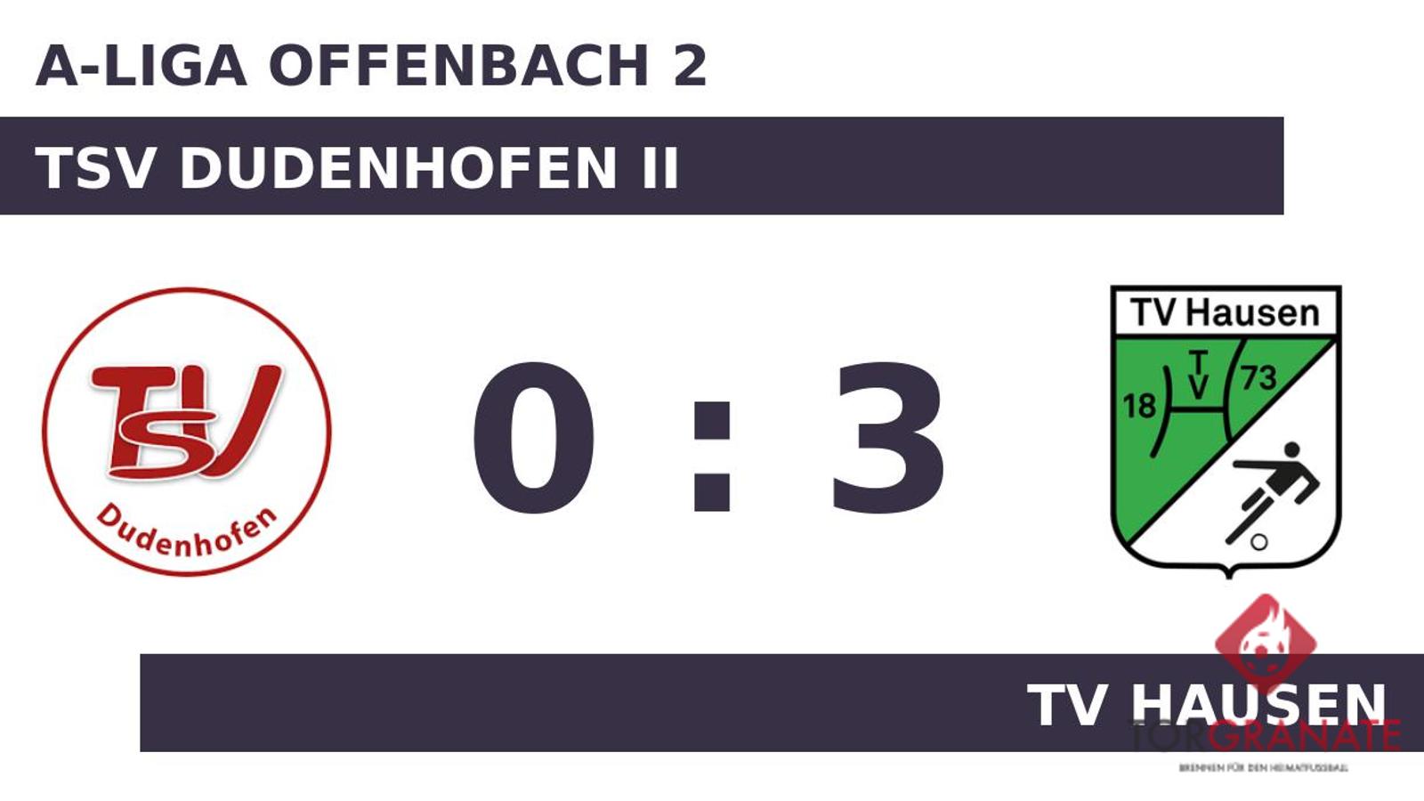 Andre Mlivic brachte die Gäste in der 32. Minute nach vorn. Mit einem Wechsel – Joseph Mafuefue kam für Cengiz Duelger – startete der TV Hausen in Durchgang zwei. Ohne weitere Tore ging es in die Pause. Der für Sebastian Langer ins Spiel gekommene Daniel Konczalla sollte in der Offensive ein Zeichen setzen (70.). Mit einem schnellen Doppelpack (73./76.) zum 3:0 schockte Konczalla TSV Dudenhofen II. Ein starker Auftritt ermöglichte dem TV Hausen am Sonntag einen ungefährdeten Erfolg gegen TSV Dudenhofen II.