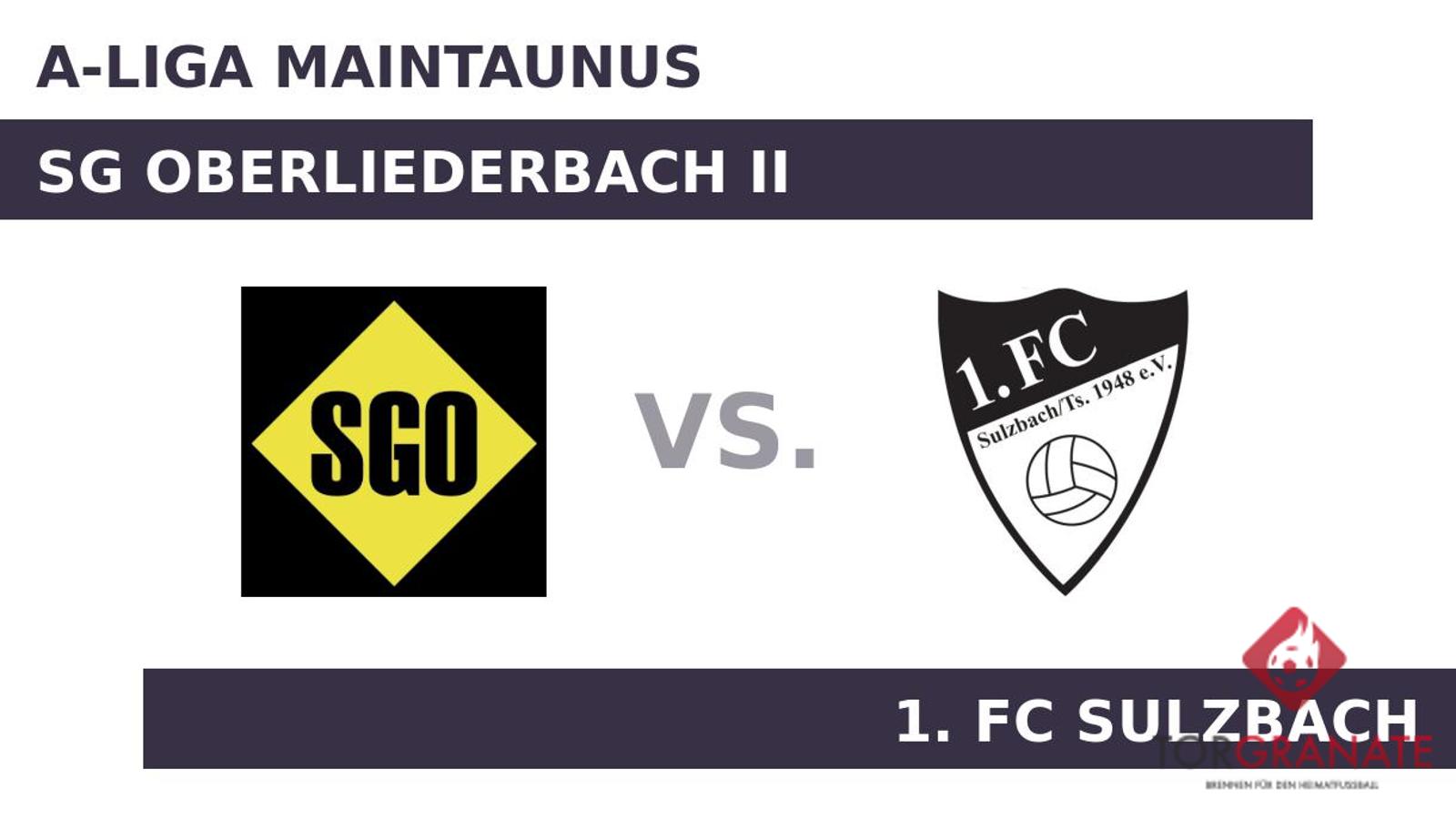 Die SG Oberliederbach II muss einen Gala-Tag erwischen, um gegen den 1. FC Sulzbach etwas auszurichten. Angesichts der gegnerischen Formstärke und der Tabellenposition ist die SG Oberliederbach II lediglich der Herausforderer.