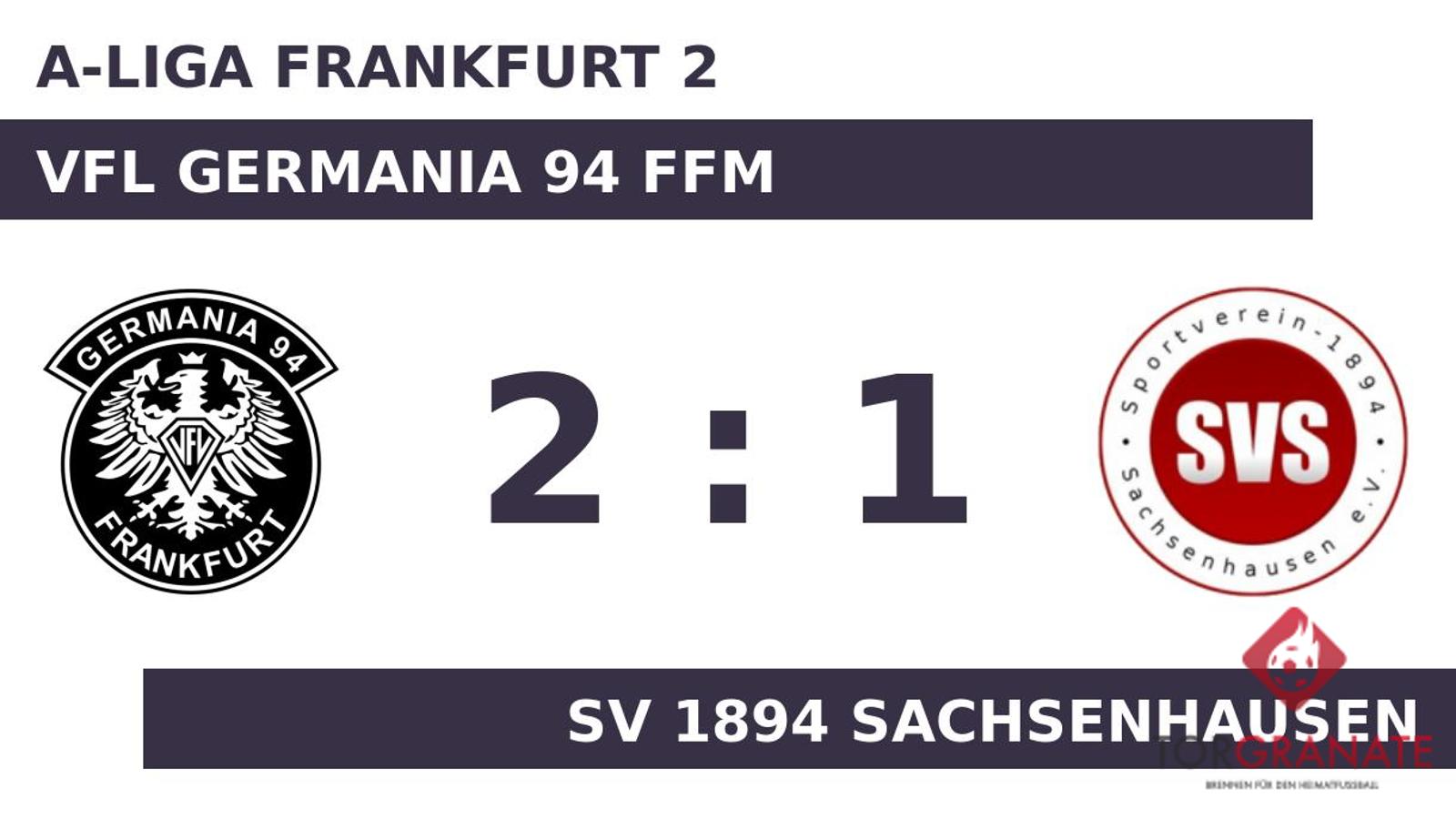 Mit beeindruckenden 67 Treffern stellt der SV Sachsenhausen den besten Angriff der A-Liga Frankfurt 2, jedoch kam dieser gegen den VfL Germania 94 Ffm nicht voll zum Zug. Nur dreimal gab sich der SV Sachsenhausen bisher geschlagen. Der SV 1894 Sachsenhausen baut die Mini-Serie von zwei Siegen nicht aus.
