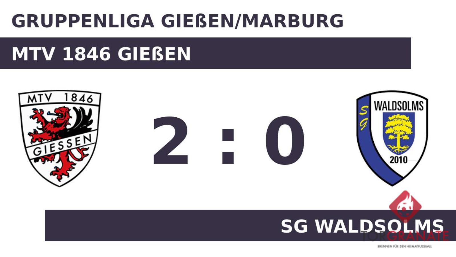 Luca Dreyer brachte den MTV 1846 Gießen in der 38. Spielminute in Führung. Der MTV Gießen hatte zur Pause eine knappe Führung auf dem Zettel stehen. Bei der SG Waldsolms kam zu Beginn der zweiten Hälfte Dario Kurbasa für Sebastian Hedrich in die Partie. Beim MTV 1846 Gießen kam Soufiane Ouassini für Yannick Tom Brinkmann ins Spiel und sollte fortan für neue Impulse sorgen (65.). Ouassini beförderte das Leder zum 2:0 des MTV Gießen über die Linie (66.). Kurz vor dem Ende des Spiels nahm der MTV 1846 Gießen noch einen Doppelwechsel vor, sodass Philipp Müller und Nabil Mir für Michel Tim Winter und Nazmi Kaplan weiterspielten (86.). Als Schiedsrichter Christian Golditz (Bad Soden-Salmünster) die Begegnung beim Stand von 2:0 letztlich abpfiff, hatte der MTV Gießen die drei Zähler unter Dach und Fach.