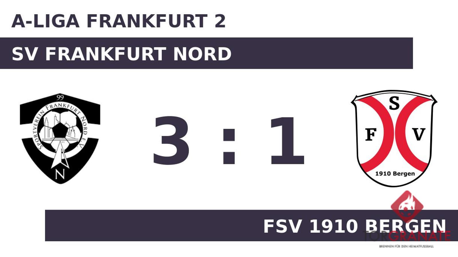 Der FSV 1910 Bergen geriet schon in der neunten Minute in Rückstand, als Emrah Tahirovic das schnelle 1:0 für SV Frankfurt Nord erzielte. Imad Akhouaji erhöhte für SV Frankfurt Nord auf 2:0 (21.). Im ersten Durchgang hatte das Heimteam etwas mehr Zug zum Tor und ging mit einem knappen Vorsprung in die Kabine. Mit dem 3:0 durch Advan Cakiqi schien die Partie bereits in der 55. Minute mit SV Frankfurt Nord einen sicheren Sieger zu haben. Für das 1:3 des FSV 1910 Bergen zeichnete Sascha Martinovic verantwortlich (75.). Mit dem Schlusspfiff durch den Unparteiischen Erol Yilmaz (Frankfurt am Main) siegte SV Frankfurt Nord gegen den FSV 1910 Bergen.