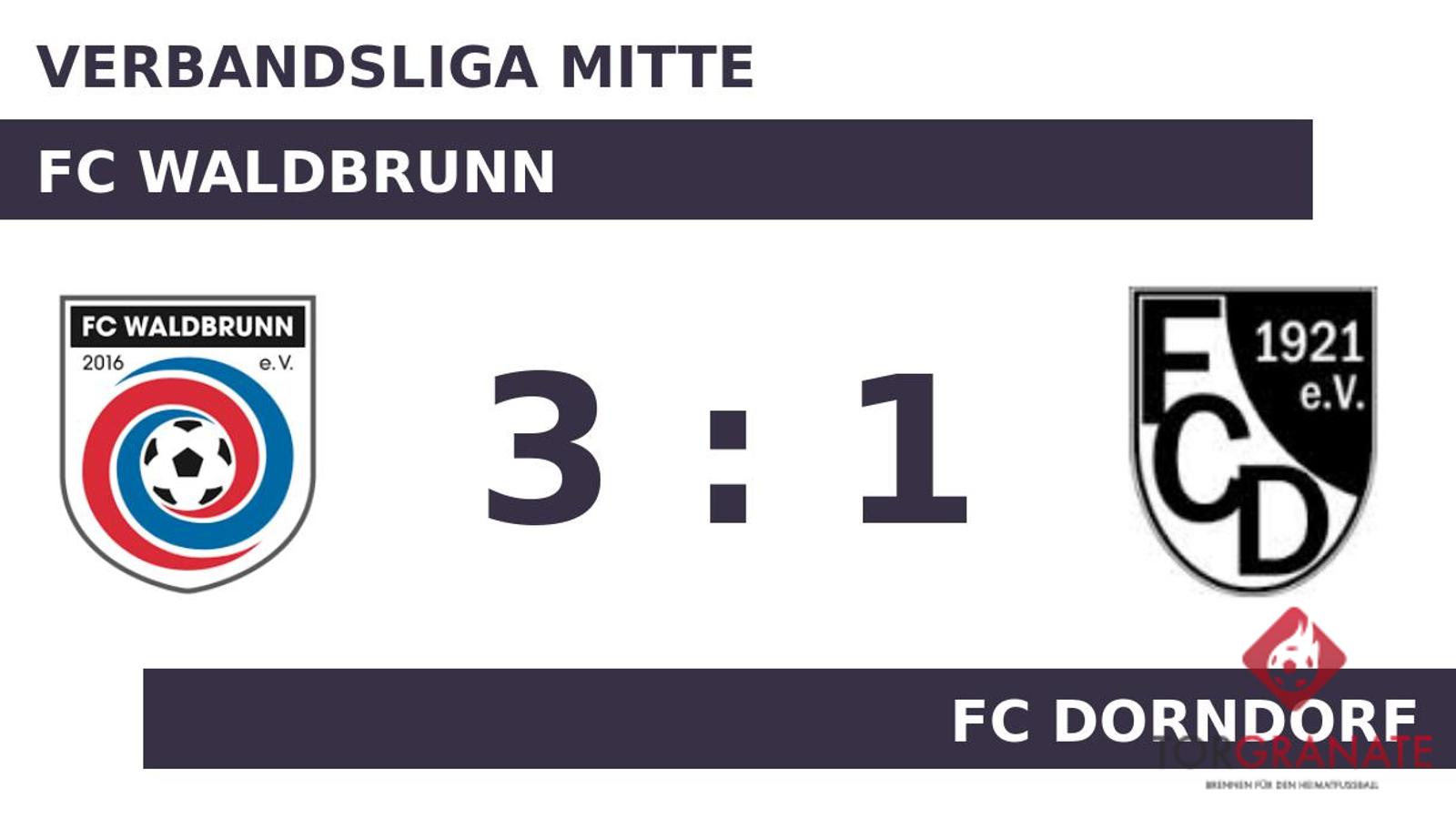Benedikt Bouillon nutzte die Chance für den FC Waldbrunn und beförderte in der 32. Minute das Leder zum 1:0 ins Netz. Der FC führte zur Halbzeit knapp mit einem Tor Vorsprung. Anstelle von Fabio Scumaci war nach Wiederbeginn Maximilian Kunz für den FC Dorndorf im Spiel. Für das 2:0 des FC Waldbrunn zeichnete Lukas Scholl verantwortlich (56.). Für ruhige Verhältnisse sorgte Yoshiki Watai, als er das 3:0 für die Waldbrunner besorgte (69.). Junmoon Park schoss die Kugel zum 1:3 für den FC Dorndorf über die Linie (86.). Am Ende verbuchte der FC Waldbrunn gegen den FCD die maximale Punkteausbeute.