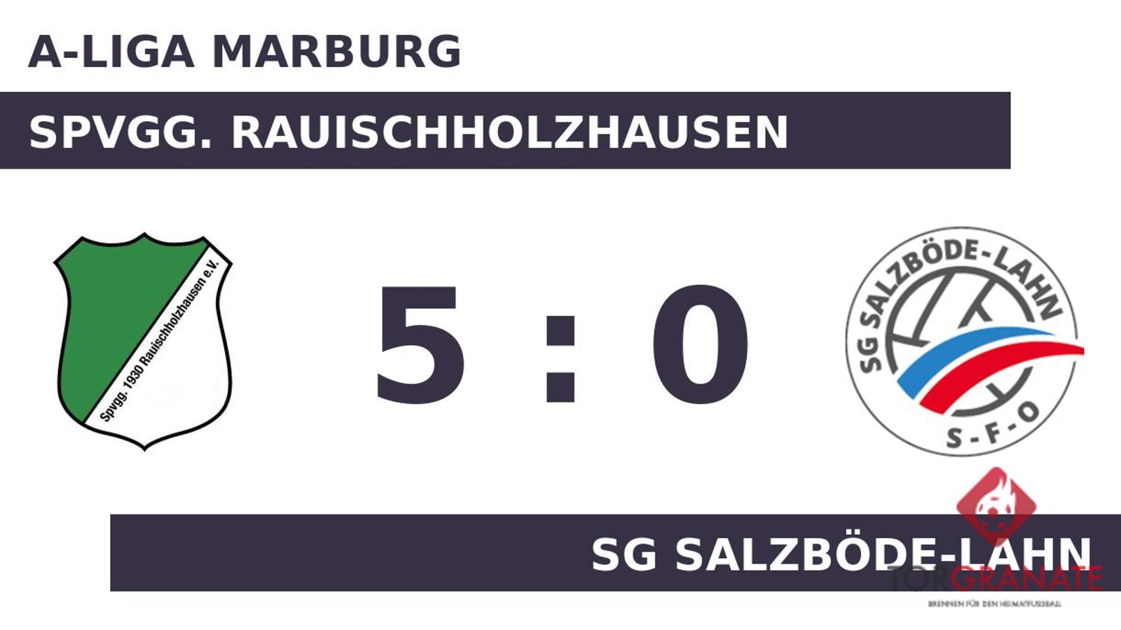 Kaum war das Spiel angepfiffen, lag das Rauischholzhausen bereits in Front. Robin Ebinger markierte in der dritten Minute die Führung. Nicolai Lorch erhöhte den Vorsprung des Ligaprimus nach 28 Minuten auf 2:0. Mit der Führung für die Gastgeber ging es in die Kabine. In Durchgang zwei lief Tim Schneider anstelle von Tizian Scheld für die SG Salzböde-Lahn auf. Lorch vollendete zum dritten Tagestreffer in der 59. Spielminute. In der 68. Minute legte Ebinger zum 4:0 zugunsten der Spvgg. Rauischholzhausen nach. Andre Traut stellte schließlich in der 82. Minute den 5:0-Sieg für das Rauischholzhausen sicher. Schlussendlich verbuchte die Spvgg. Rauischholzhausen gegen die SG Salzböde-Lahn einen überzeugenden Heimerfolg.