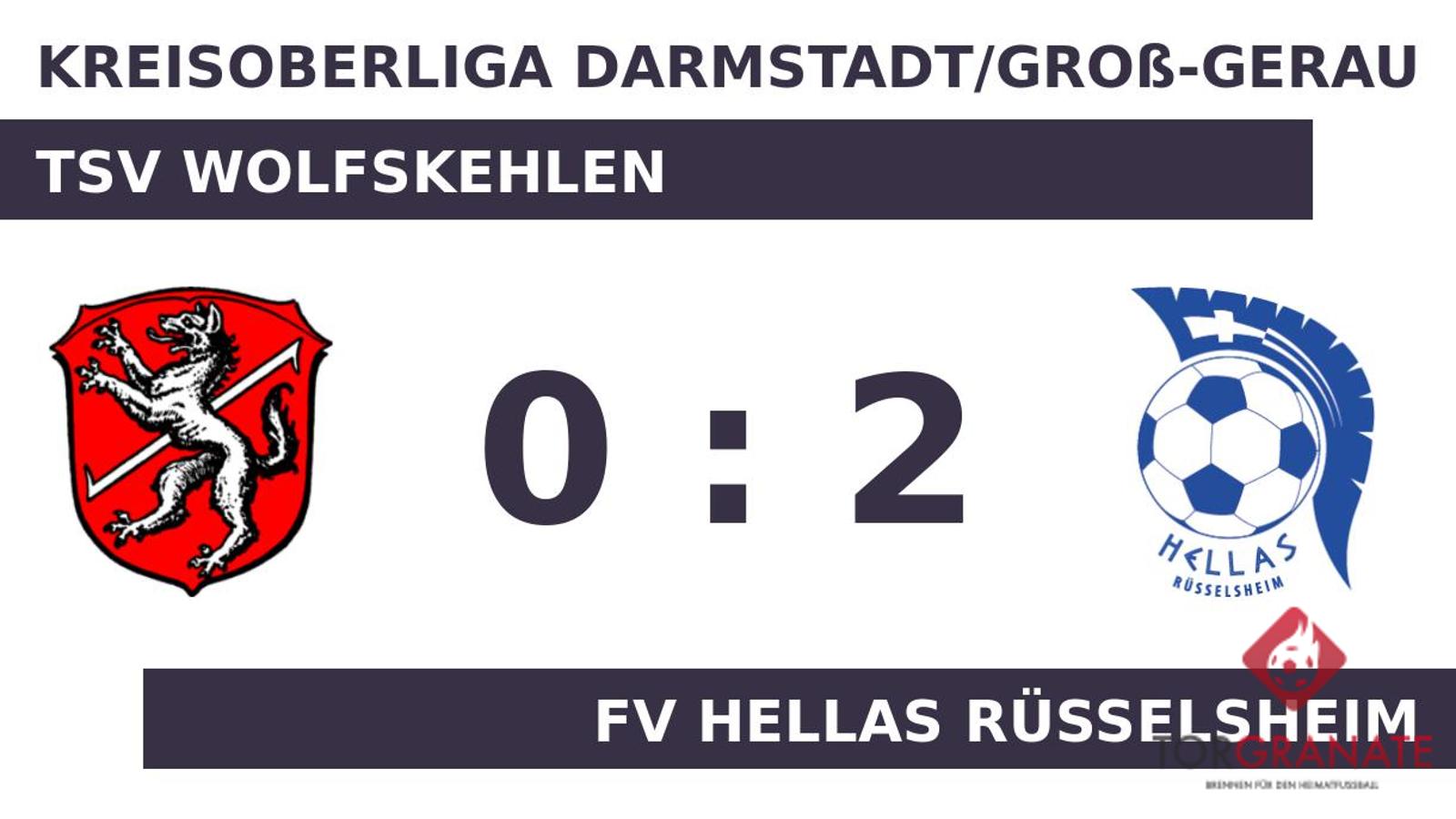 Für den Führungstreffer des FV Hellas Rüsselsheim zeichnete Bugrahan Oezcelik verantwortlich (21.). Nach nur 28 Minuten verließ Christopher Peter vom TSV Wolfskehlen das Feld, Tobias Hammann kam in die Partie. Die Pausenführung des Hellas Rüsselsheim fiel knapp aus. In Durchgang zwei lief Ioannis Safis anstelle von k. A. für die Gäste auf. Burak Olgun versenkte die Kugel zum 2:0 für den FV Hellas Rüsselsheim (60.). Die 0:2-Heimniederlage des TSV Wolfskehlen war Realität, als Schiedsrichter Adriatik Kaba (Egelsbach) die Partie letztendlich abpfiff.
