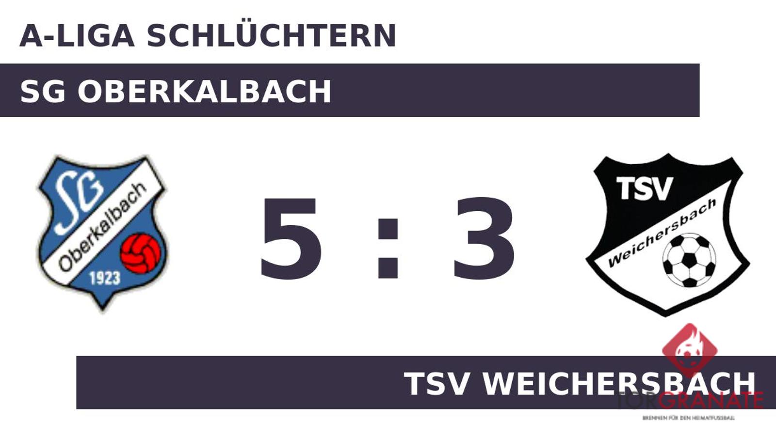 Bis zur Pause hielt die Defensive der TSV dicht, sodass sich der Vorsprung der SG Oberkalbach nicht weiter vergrößerte. Die SG Oberkalbach stellte in der 76. Minute personell um: Matthias Eldner ersetzte Niklas Jost und damit ein nomineller Verteidiger den anderen. Wenig später kamen Christian Steinmacher und Jannik Koempel per Doppelwechsel für Lars Vesmanis und Alexander Mametov auf Seiten der TSV Weichersbach ins Match (77.). Letzten Endes schlug die SG Oberkalbach im 19. Saisonspiel die Weichersbacher souverän mit 5:3 vor heimischer Kulisse.