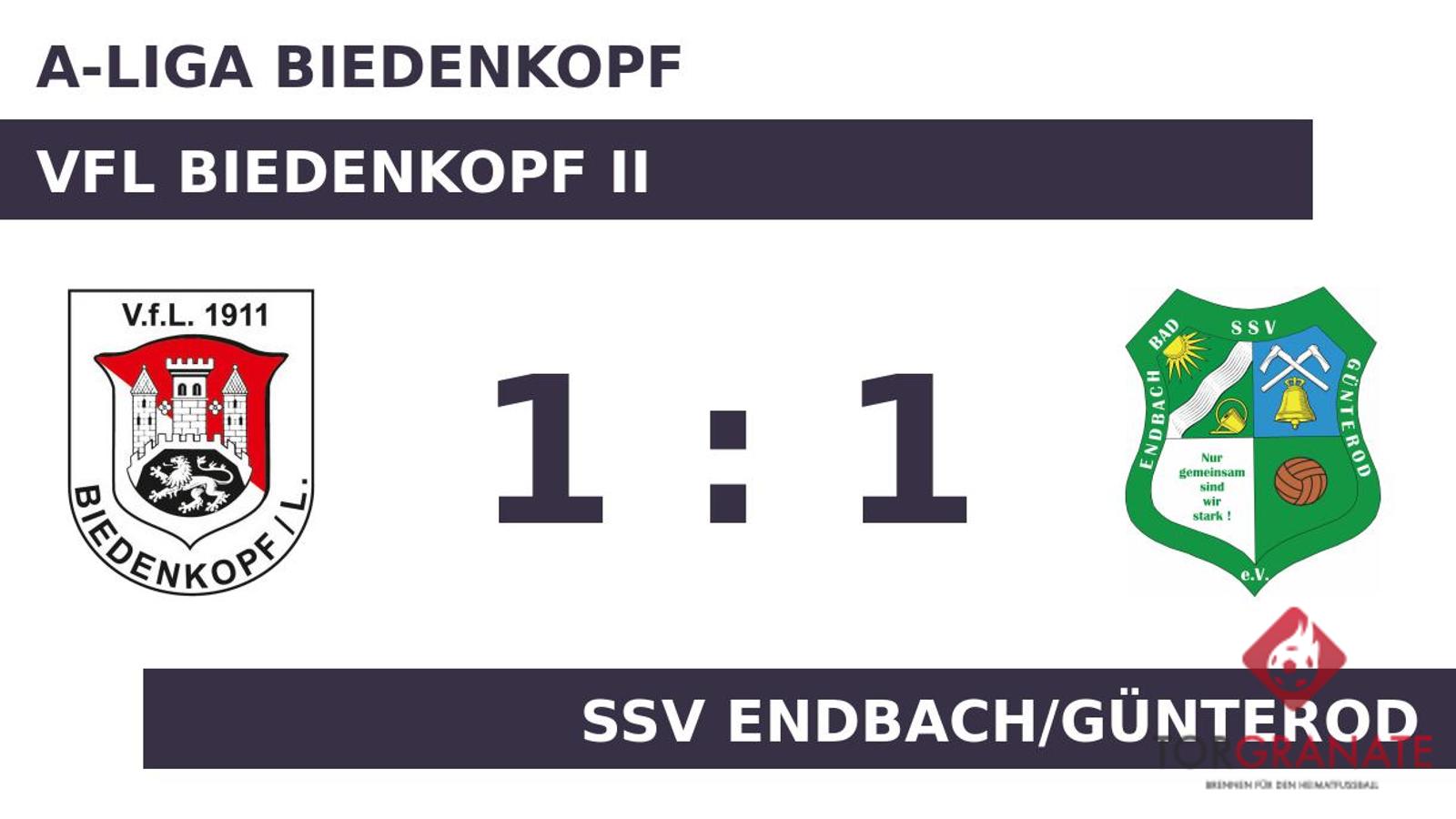 Auf die vermeintliche Siegerstraße brachte Nils Ellenfeld sein Team in der 13. Minute. Für Sefa Uenal war der Einsatz nach 14 Minuten vorbei. Für ihn wurde Benjamin-Oliver Schmitt eingewechselt. Hussein El Issa witterte seine Chance und schoss den Ball zum 1:1 für den VfL Biedenkopf II ein (24.). Der Unparteiische beendete die erste Halbzeit, ohne dass weitere Tore fielen. Der Schlusspfiff durch Referee Ralf Acker (Steffenberg) setzte allen Hoffnungen auf weitere Treffer ein Ende. Es blieb letztlich bei der Punkteteilung.