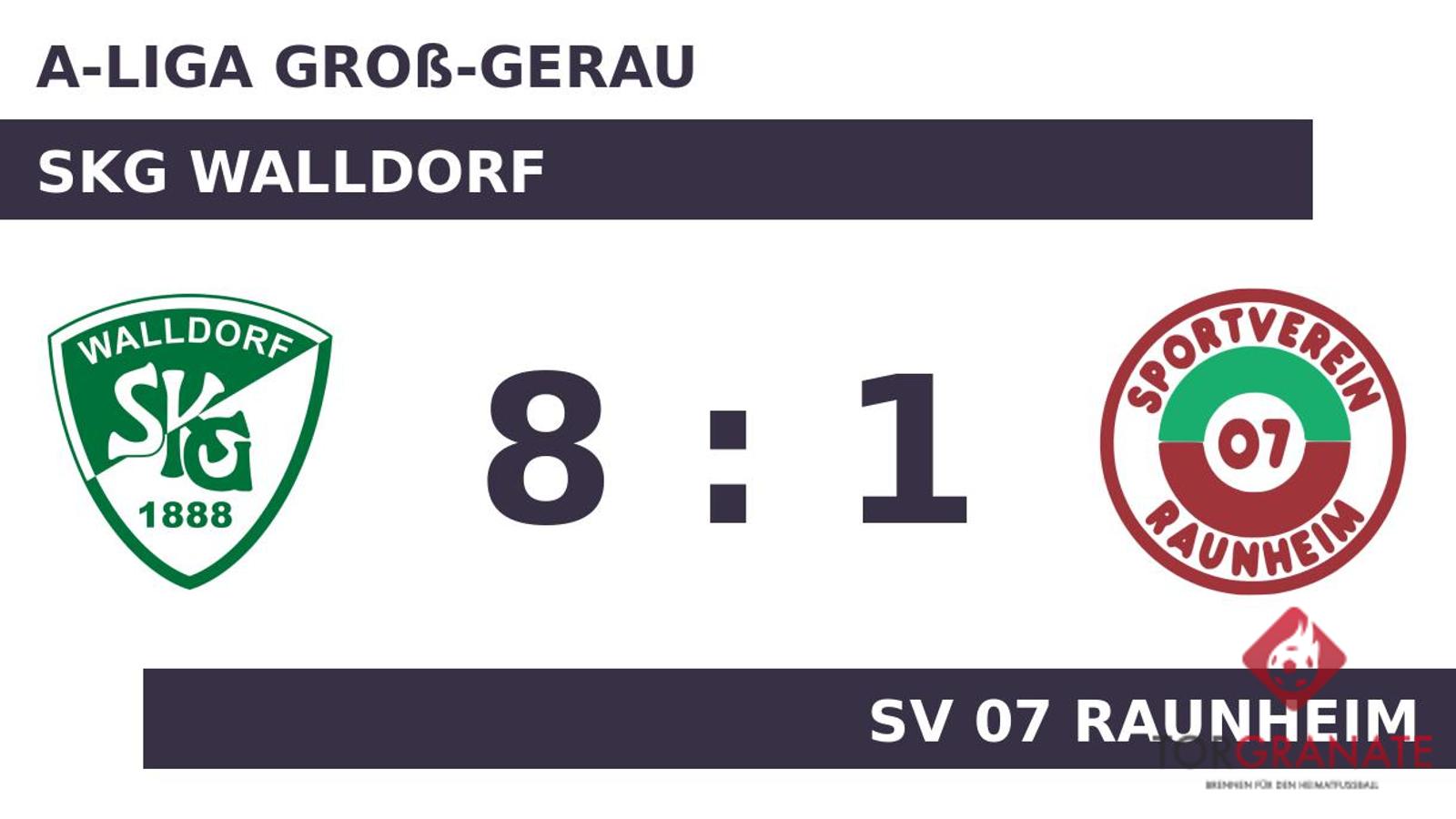 Durch den nie gefährdeten Sieg gegen den SV 07 Raunheim festigte die SKG Walldorf den vierten Tabellenplatz. Erfolgsgarant der SKG Walldorf ist die funktionierende Offensivabteilung, die mit 69 Treffern den Liga-Bestwert aufzeigt. Die bisherige Spielzeit der SKG Walldorf ist weiter von Erfolg gekrönt. Die SKG Walldorf verbuchte insgesamt zehn Siege und sechs Remis und musste erst drei Niederlagen hinnehmen.