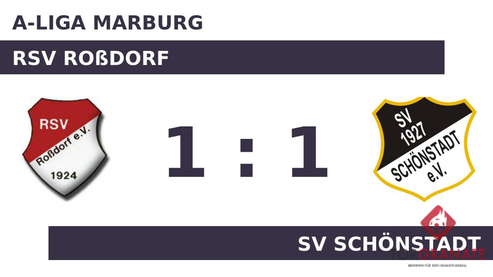 Ingo Dickmann brachte den SV Schönstadt in der elften Spielminute in Führung. Ehe es in die Kabinen ging, markierte Milan Völker das 1:1 für den RSV Roßdorf (40.). Der Schlusspfiff durch Referee Holger Sann (Kirtorf) setzte allen Hoffnungen auf weitere Treffer ein Ende. Es blieb letztlich bei der Punkteteilung.