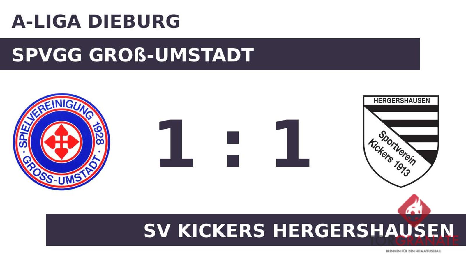 Jannick Baum war es, der in der 28. Minute das Spielgerät im Tor der SpVgg Groß-Umstadt unterbrachte. Die SpVgg Groß-Umstadt glich bis zum Halbzeitpfiff nicht mehr aus. Schließlich schickte Schiedsrichter Annika Hinrichs (Eppertshausen) beide Teams mit der knappen Führung für den SV Hergershausen in die Kabinen. Der Treffer, der Giuseppe Andreozzi in der 90. Minute gelang, bescherte seiner Mannschaft kurz vor dem Ende noch den Ausgleich. Am Ende stand es zwischen der SpVgg Groß-Umstadt und dem SV Kickers Hergershausen pari.