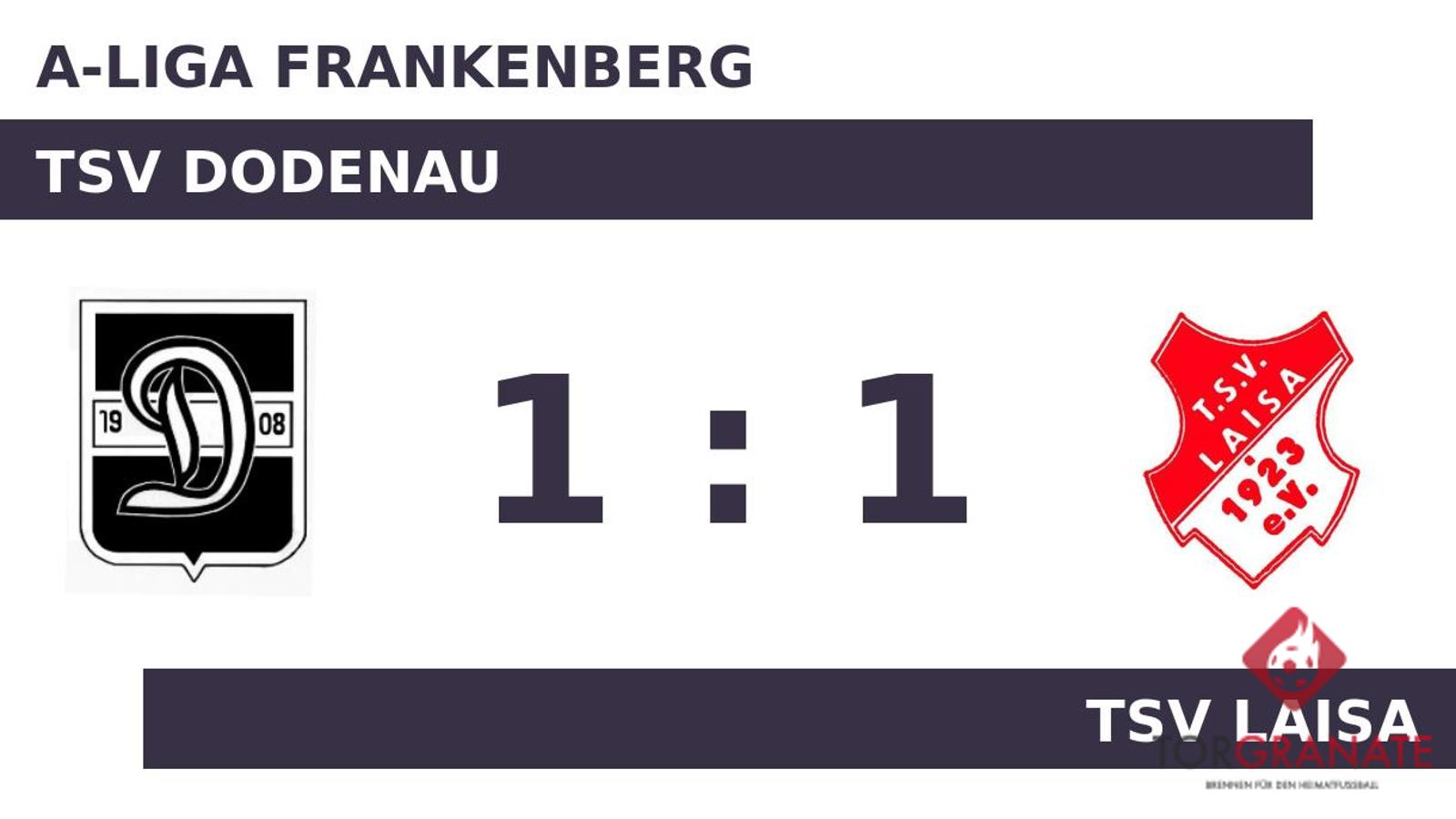 Alexander Hess brachte den Ball zum 1:0 zugunsten des TSV Laisa über die Linie (36.). Einen Torerfolg in Halbzeit eins verbuchten lediglich die Gäste, womit man eine knappe Führung mit in die Kabinen nahm. Tobias Moog versenkte den Ball in der 52. Minute im Netz des TSV Laisa. Am Schluss hatte im Duell der beiden Mannschaften keine die Oberhand gewonnen und so trennten sich der TSV Dodenau und der TSV Laisa schließlich mit einem Remis.