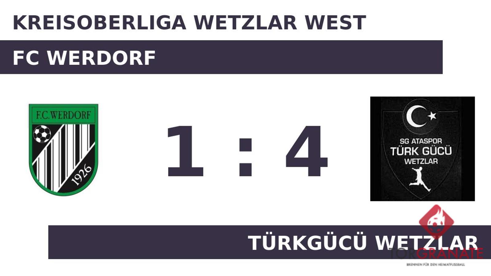 Für den Führungstreffer der Türkgücü Wetzlar zeichnete Furkan Caglar verantwortlich (36.). Aziz Kulle versenkte die Kugel zum 2:0 für die Türkgücü Wetzlar (39.). Bevor es in die Pause ging, hatte Manuel Habeck Lopes noch das 1:2 des FC Werdorf parat (45.). Zur Pause wusste die Türkgücü Wetzlar eine hauchdünne Führung auf der Habenseite. Mikael Arslan beförderte das Leder zum 3:1 der Türkgücü Wetzlar in die Maschen (77.). Alparslan Bingoel war es, der kurz vor Ultimo das 4:1 besorgte und die Türkgücü Wetzlar inklusive Anhang damit von höheren Gefilden träumen lässt (86.). Ein starker Auftritt ermöglichte der Türkgücü Wetzlar am Sonntag einen ungefährdeten Erfolg gegen den FC Werdorf.