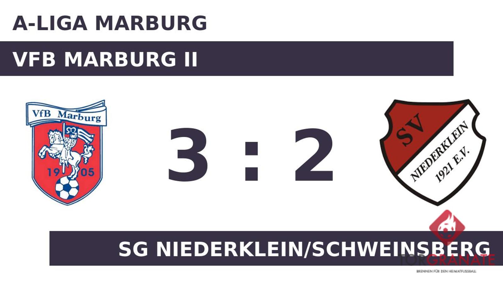 Der Unparteiische setzte mit dem Halbzeitpfiff dem torlosen Treiben auf dem Feld vorläufig ein Ende. Adil Ibrovic versenkte die Kugel zum 1:0 (52.). Die passende Antwort hatte Frederik Janik parat, als er in der 54. Minute zum Ausgleich traf. Maximilian Ermler machte in der 68. Minute das 2:1 des VfB Marburg II perfekt. Paul Jost war es, der in der 89. Minute das Spielgerät im Tor der SG Niederklein/Schweinsberg unterbrachte. Maksim Hinev schoss für den Gast in der 90. Minute das zweite Tor. Letzten Endes holte der VfB Marburg II gegen die Niederk./Schweinsb. drei Zähler.