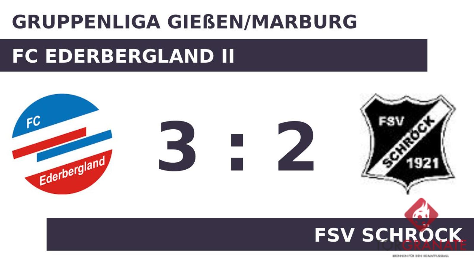 Ezoua Stephane Kouame traf zum 1:0 zugunsten des FSV Schröck (38.). Bevor es in die Pause ging, hatte Pascal Hammer noch das 1:1 des FC Ederbergland II parat (45.). Eine Aussage darüber, wer am Ende die Nase vorn haben würde, war nach dem Abpfiff der ersten Halbzeit noch nicht zu treffen. Es ging mit einem Gleichstand in die Kabinen. Die nächsten beiden Treffer waren einem Mann vorbehalten: Hammer schnürte einen Doppelpack (63./71.), sodass Ederbergland II fortan mit 3:1 führte. Jason Schmitt, der von der Bank für Kouame kam, sollte für neue Impulse beim FSV Schröck sorgen (67.). In der 74. Minute brachte Schmitt den Ball im Netz des FC Ederbergland II unter. Kurz vor dem Ende des Spiels nahm der FSV Schröck noch einen Doppelwechsel vor, sodass Niels Lemmer und Alessio Canevese für Marcel Seip und Toki Hiromoto weiterspielten (88.). Als Schiedsrichter Louisa Kanwischer (Habichtswald) die Partie abpfiff, reklamierte Ederbergland II schließlich einen 3:2-Heimsieg für sich.