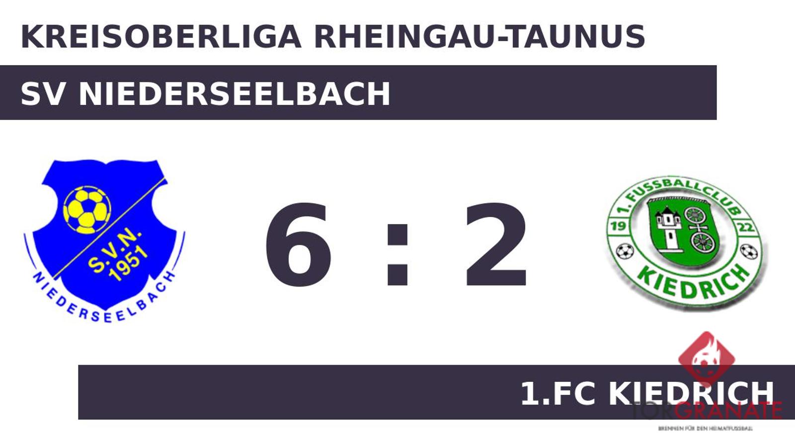 Matthias Bernert versenkte den Ball in der 23. Minute im Netz des 1.FC Kiedrich. In der 27. Minute erhöhte Thomas Cumiskey auf 2:0 für den SV Niederseelbach. Bevor es in die Pause ging, hatte Phon Hosseus noch das 1:2 des 1.FC Kiedrich parat (40.). Der SV Niederseelbach hatte zur Pause eine knappe Führung auf dem Zettel stehen. Marco Wagener beförderte das Leder zum 3:1 des Spitzenreiters über die Linie (47.). Sascha Haack war es, der in der 73. Minute das Spielgerät im Gehäuse des Heimteams unterbrachte. Das 4:2 für den SV Niederseelbach stellte Wagener sicher. In der 80. Minute traf er zum zweiten Mal während der Partie. Der SV Niederseelbach baute die Führung aus, indem Patrick Hammesfahr zwei Treffer nachlegte (81./90.). Letztlich feierte der SV Niederseelbach gegen den 1.FC Kiedrich nach einer überzeugenden Darbietung einen verdienten Heimsieg.