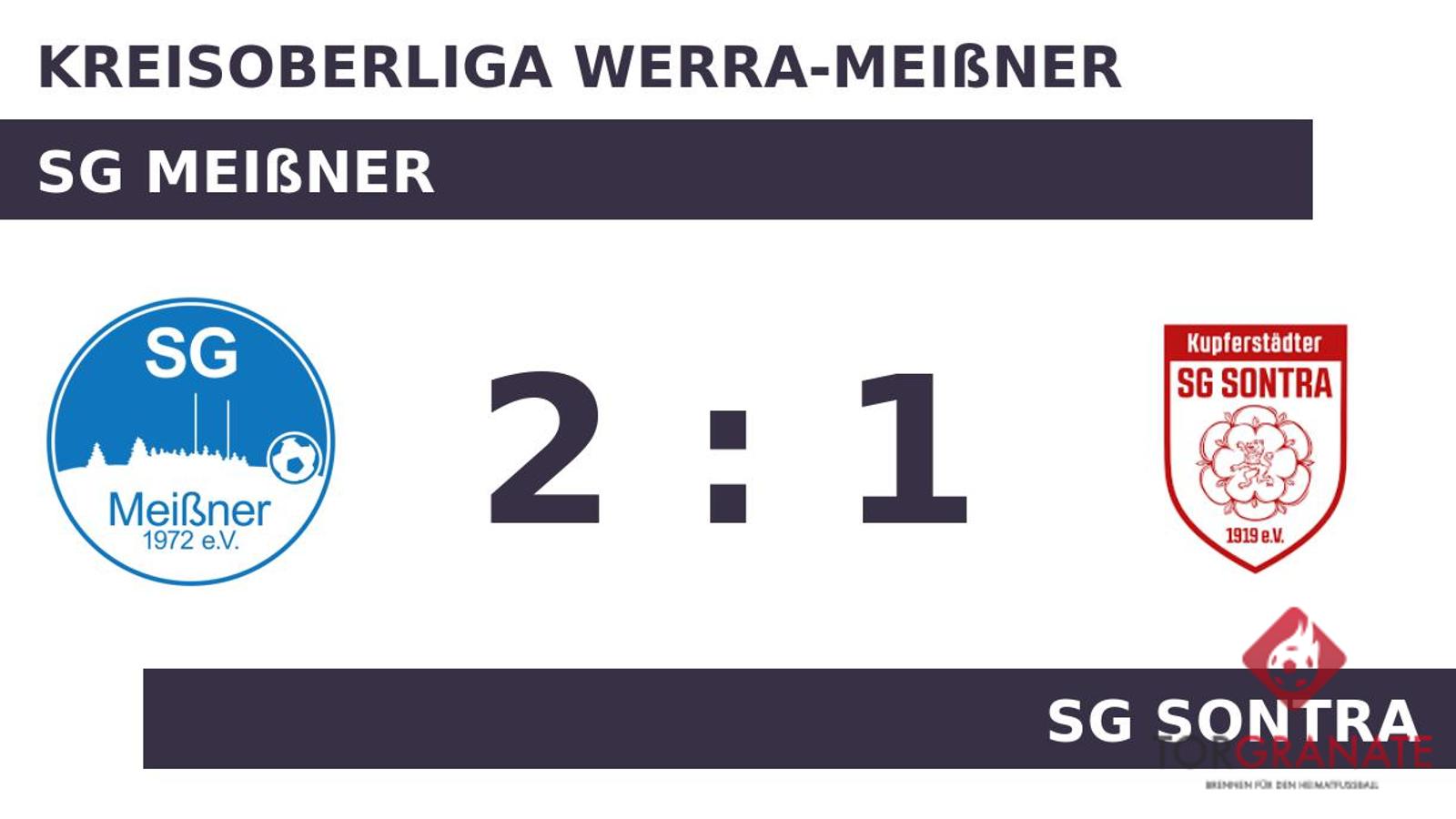 Für den Führungstreffer des Heimteams zeichnete Lukas Toby verantwortlich (34.). Marvin Beck ließ sich in der 39. Minute nicht zweimal bitten und verwertete zum 2:0 für die SG Meißner. Mit der Führung für die SG Meißner ging es in die Kabine. Philipp Tastekin war zur Stelle und markierte das 1:2 der SG Sontra (90.). Letzten Endes ging die SG Meißner im Duell mit dem Gast als Sieger hervor.