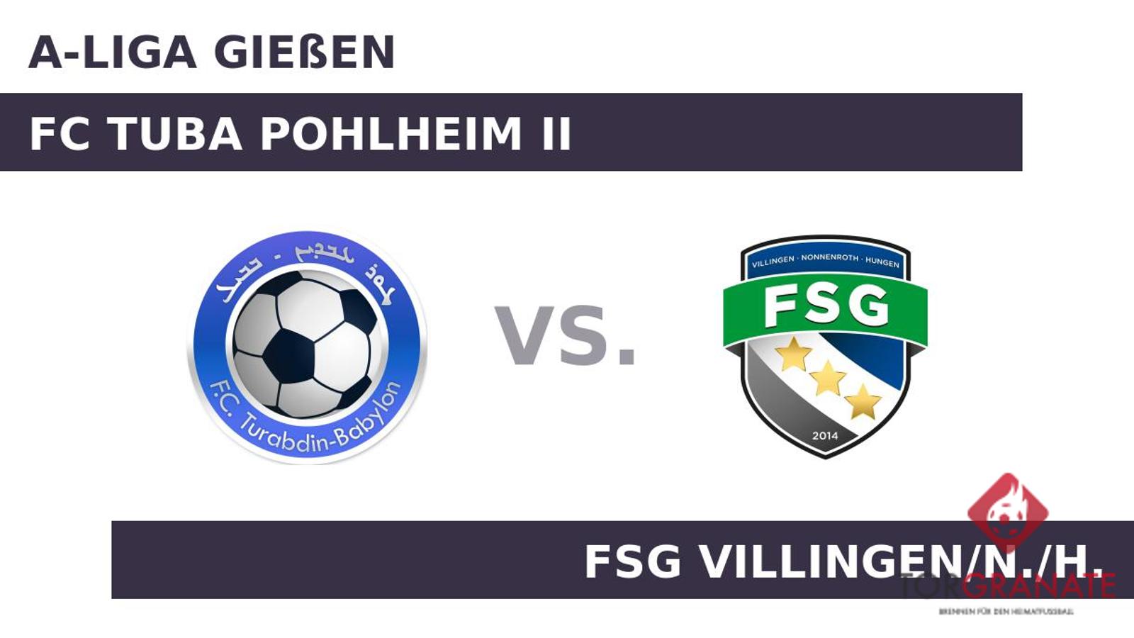Die Hintermannschaft des FC TuBa Pohlheim II ist gewarnt, im Schnitt trifft die Offensivabteilung der FSG Villingen/N./H. mehr als zweimal pro Spiel ins Schwarze. Die FSG Vill/Non/Hungen hat den FC TuBa Pohlheim II im Nacken. Der FC TuBa Pohlheim II liegt im Klassement nur fünf Punkte hinter der FSG Villingen/N./H.