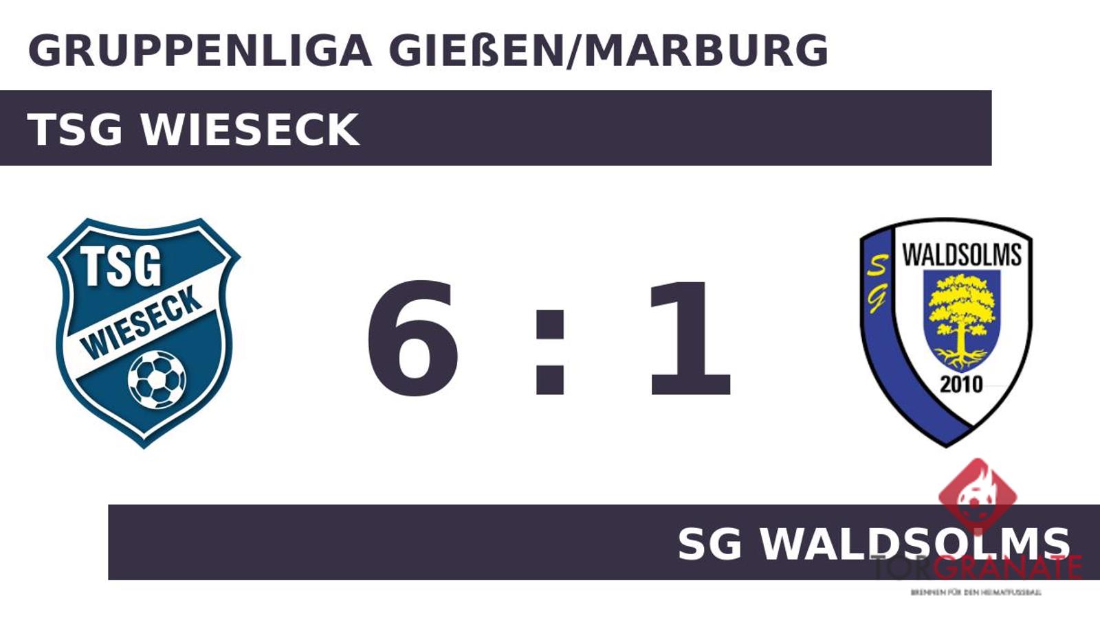 Ein Doppelpack brachte die Wiesecker in eine komfortable Position: Piergiorgio Zucca war gleich zweimal zur Stelle (17./27.). Mit dem 3:0 durch Leon Klapp schien die Partie bereits in der 37. Minute mit der TSG einen sicheren Sieger zu haben. Die Turn- und Sportgemeinschaft dominierte den Gegner zur Pause nach Belieben und ging mit einer deutlichen Führung in die Kabine. Bei der SG Waldsolms gab es ein neues Gesicht auf dem Platz: Dorian Ruiz Perez wurde für Orkan Bicakkiran eingewechselt. In der Pause stellte die TSG Wieseck personell um: Per Doppelwechsel kamen Nnamdi-Benjamin Mark und Ben Beitlich auf den Platz und ersetzten Lucas Cech und Mika Oberheim. Patrick Markiewicz (61.) und Janik Schwarz (67.) trafen innerhalb weniger Minuten zur Vorentscheidung des Gastgebers. Pascal Hommel erzielte in der 71. Minute den Ehrentreffer für die SG Waldsolms. Den Vorsprung der TSG Wieseck ließ Beitlich in der 79. Minute anwachsen. Mit dem Spielende fuhr die TSG Wieseck einen Kantersieg ein. Bereits vor dem Seitenwechsel war für die SG Waldsolms klar, dass gegen die TSG Wieseck heute kein Kraut gewachsen war.
