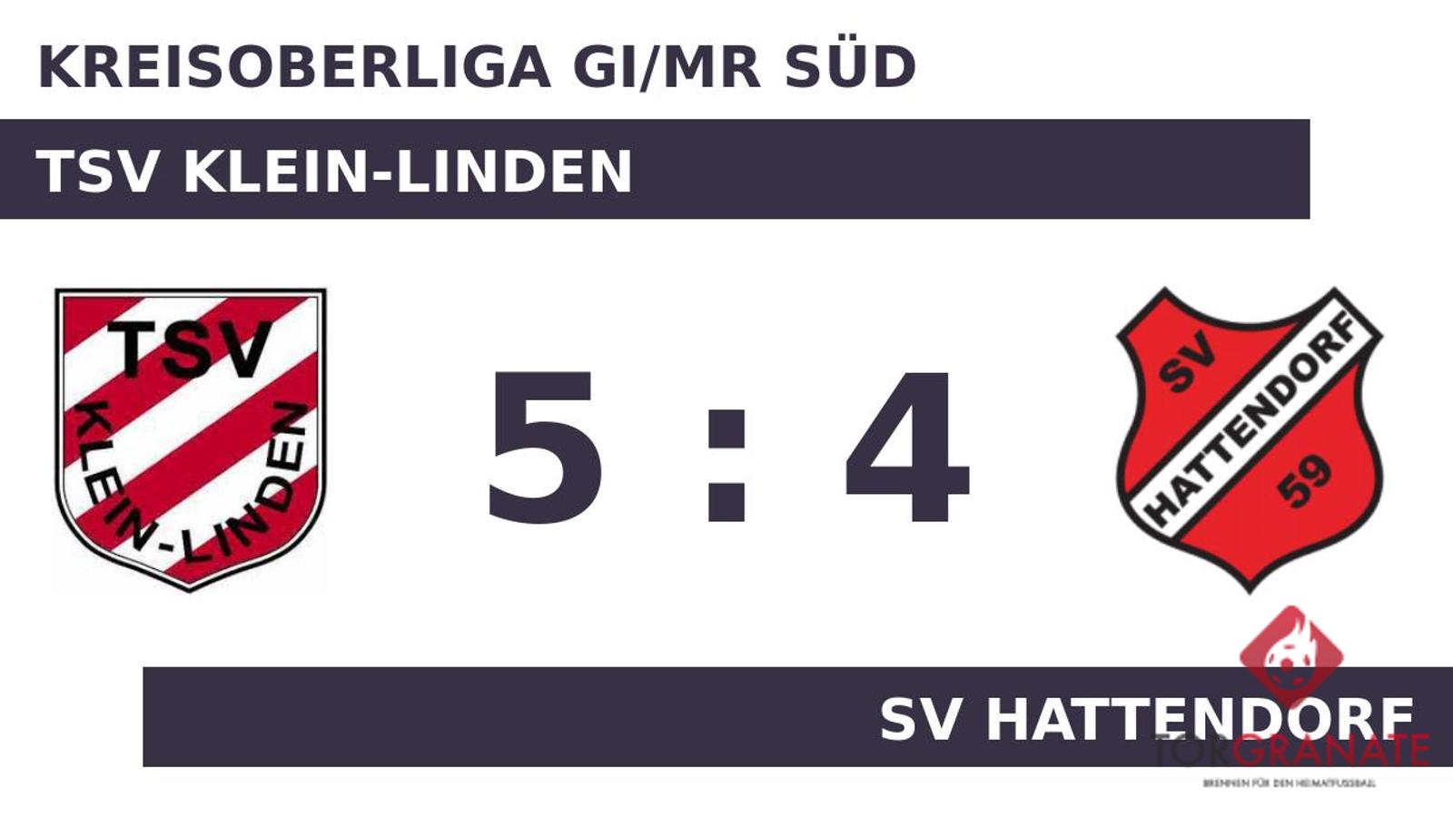 Kaum war das Spiel angepfiffen, lag der SV Hattendorf bereits in Front. Jan Luca Metz markierte in der dritten Minute die Führung. Lange währte die Freude der Gäste nicht, denn schon in der vierten Minute schoss Finn Bathmann den Ausgleichstreffer für den TSV Klein-Linden. Das 2:1 des SV Hattendorf bejubelte Adrian Weppler (16.). In der 33. Minute war Bathmann mit dem Ausgleich zum 2:2 zur Stelle. Damit schoss er bereits seinen zweiten Treffer! Christian Andreev verwandelte in der 34. Minute einen Elfmeter und brachte dem SV Hattendorf die 3:2-Führung. Zur Pause behielt der SV Hattendorf die Nase knapp vorn. Mit einem Wechsel – Martin Fuchs kam für George-Antonio Flonta? – startete der TSV Klein-Linden in Durchgang zwei. Per Elfmeter erhöhte Andreev in der 52. Minute seine Torausbeute an diesem Tag auf zwei Treffer – 4:2 für den SV Hattendorf. Patrick Walldorf schlug doppelt zu und glich damit für den TSV Klein-Linden aus (54./71.). Zum spielentscheidenden Akteur avancierte Eric Jan Schneider, der mit seinem Treffer in der 89. Minute die späte Führung der Heimmannschaft sicherstellte. Der SV Hattendorf war bereits auf der Siegerstraße, geriet im Verlauf jedoch ins Straucheln und stand am Ende mit leeren Händen da.