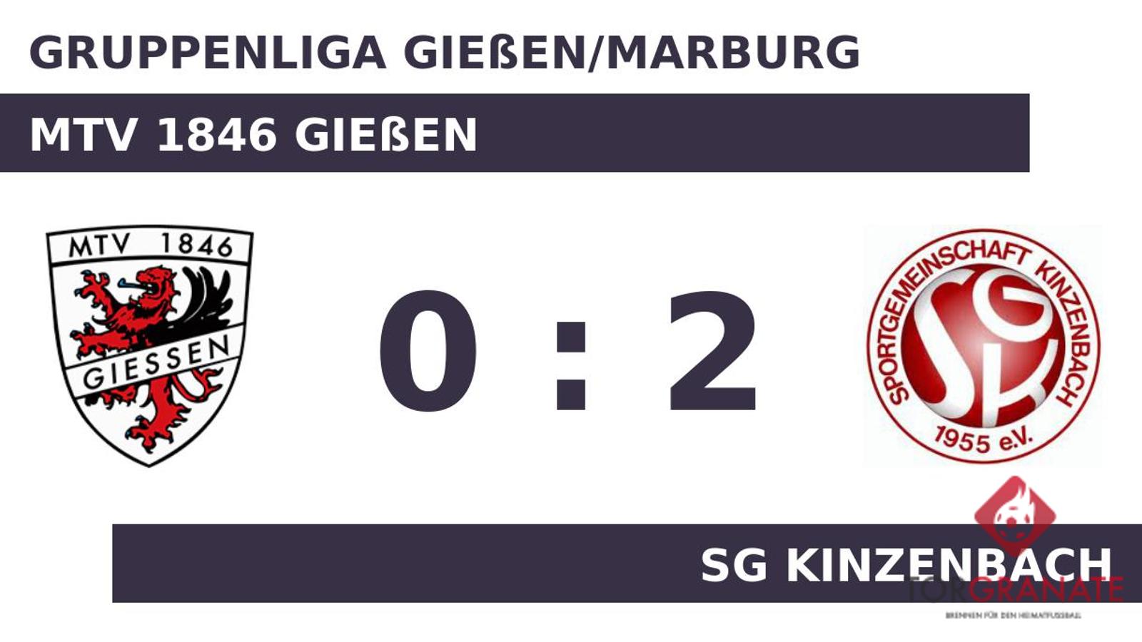 Der MTV 1846 Gießen geriet schon in der fünften Minute in Rückstand, als Tommy Ried das schnelle 1:0 für die SG Kinzenbach erzielte. Zum psychologisch ungünstigen Zeitpunkt vor der Halbzeit (45.) schoss Andre Jörg einen weiteren Treffer für die SG Kinzenbach. Es waren die Gäste, die zur Pause eine Führung ihr Eigen nannten. Der MTV Gießen kam mit einer geänderten Formation aus der Kabine zurück: Luca Gysbers war für Nnamdi-Benjamin Mark zur Stelle. In der 63. Minute stellte die SG Kinzenbach personell um: Per Doppelwechsel kamen Maxim Probst und Merlin Schmidt auf den Platz und ersetzten Tom Volin und Jonas Mueller. Der Halbzeitstand von 2:0 war letztlich auch das Endergebnis. Damit hatte sich die Sportgemeinschaft bereits vor dem Pausenpfiff auf die Siegerstraße gebracht.