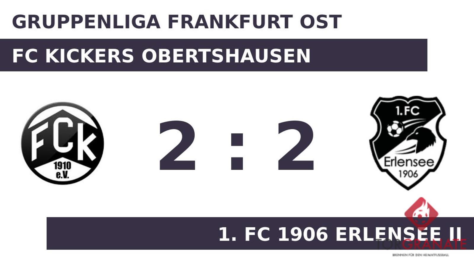 Niklas Kaufmann traf zum 1:0 zugunsten der Kickers Obertshausen (11.). Im ersten Durchgang hatte die Kickers etwas mehr Zug zum Tor und ging mit einem knappen Vorsprung in die Kabine. Für das 2:0 des FCK zeichnete Jan Gebhardt verantwortlich (50.). Philipp Müller verkürzte für den 1. FC Erlensee II später in der 60. Minute auf 1:2. Thierno Diallo glich nur wenig später für die Gäste aus (65.). Alles sprach für einen Sieg des FC Kickers Obertshausen, doch am Ende wurde das Aufbäumen des 1. FC 1906 Erlensee II noch belohnt, und die Teams trennten sich mit einem Remis voneinander.