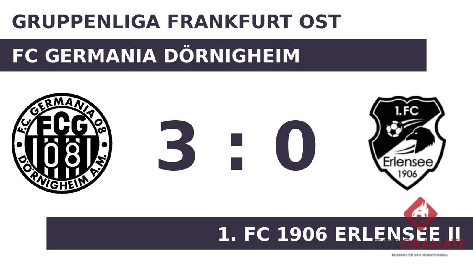 Kaum war das Spiel angepfiffen, lag der FC Germania Dörnigheim bereits in Front. Mert Oezkan markierte in der dritten Minute die Führung. Die nächsten beiden Treffer waren einem Mann vorbehalten: Kaan Köksal schnürte einen Doppelpack (5./14.), sodass die Gastgeber fortan mit 3:0 führten. Das Germania Dörnigheim gab in Durchgang eins klar den Ton an. Folgerichtig stand zur Pause eine klare Führung auf dem Zettel. Der 1. FC 1906 Erlensee II kehrte stark verändert aus der Kabine zurück. Statt Nico Dauth, k. A. und k. A. standen jetzt Robin Willy Muenk, Dominik Pascal Spindler und Denzel Epps auf dem Platz. Schlussendlich hatte der FC Germania Dörnigheim die Hausaufgaben bereits im ersten Durchgang erledigt. Nach Wiederanpfiff betrieben die Gäste Schadensbegrenzung und blieben ohne weiteren Gegentreffer.