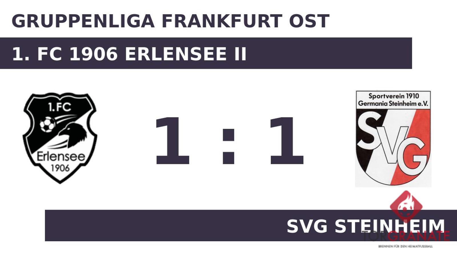 Auf die vermeintliche Siegerstraße brachte Marcus Weinhardt sein Team in der 31. Minute. Zur Pause behielt der SVG Steinheim die Nase knapp vorn. Für das 1:1 des 1. FC 1906 Erlensee II zeichnete Markus Wagner verantwortlich (71.). Dass die Partie keinen Sieger finden würde, war besiegelte Sache, als Schiedsrichter Lasse Braun (Frankfurt am Main) die Begegnung beim Stand von 1:1 schließlich abpfiff.