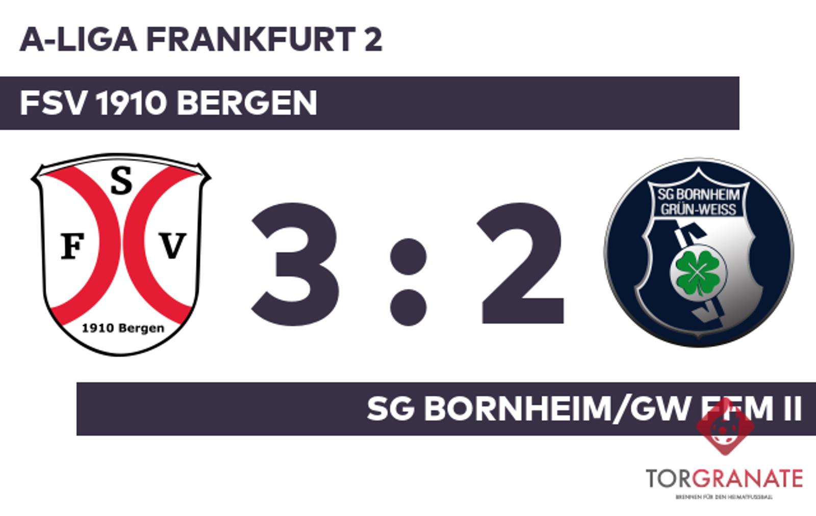 A-Liga Frankfurt 2: FSV 1910 Bergen – SG Bornheim/GW Ffm II, 3:2 (1:2)