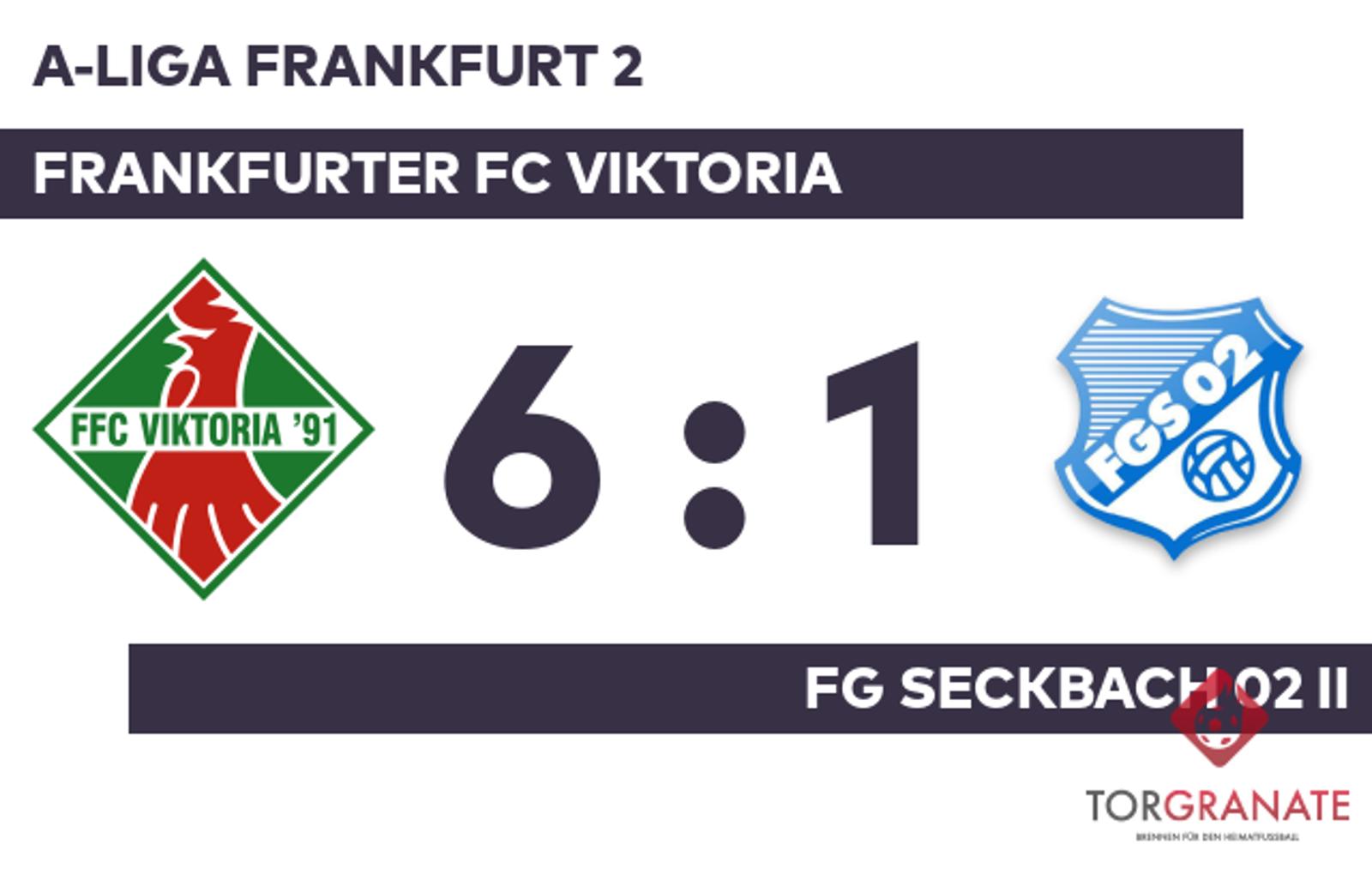 In der Anfangsphase schaffte es keines der beiden Teams, sich eine Chance zu erarbeiten. Der Frankfurter FC Viktoria ging durch John-Philip Schneider in der 16. Minute in Führung. Für das 2:0 und 3:0 war Malte Lorenz verantwortlich. Der Akteur traf gleich zweimal ins Schwarze (23./33.). In Durchgang zwei lief Wolfram Pfister anstelle von Julian Raab für die FG Seckbach 02 II auf. Die beiden Mannschaften verabschiedeten sich schließlich mit der deutlichen Führung für den FFC Viktoria in die Pause. Carl Leon Steinacker beförderte das Leder zum 1:3 der FG Seckbach 02 II über die Linie (57.). Für ruhige Verhältnisse sorgte Lorenz, als er das 4:1 für den Frankfurter FC Viktoria besorgte (62.). Julian Ehrlich gelang ein Doppelpack (66./67.), mit dem er das Ergebnis auf 6:1 hochschraubte. Am Ende fuhr der Frankfurter FC Viktoria einen deutlichen Sieg ein. Dabei demonstrierte der FFC Viktoria bereits in Hälfte eins großes Leistungsvermögen, als man die FG Seckbach 02 II in Grund und Boden spielte.