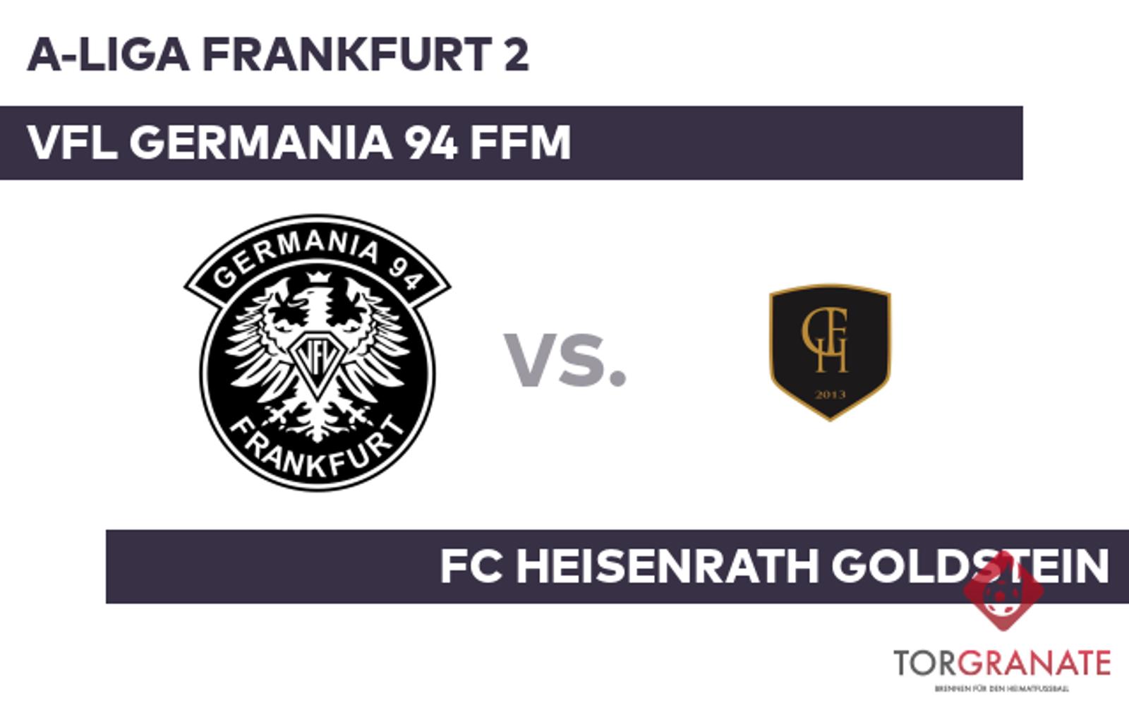 Mit dem VfL Germania 94 Ffm spielt der FC Heisenrath Goldstein gegen eine Mannschaft auf Augenhöhe – zumindest lässt der Blick auf die aktuelle Tabellenlage der beiden Mannschaften dies vermuten.