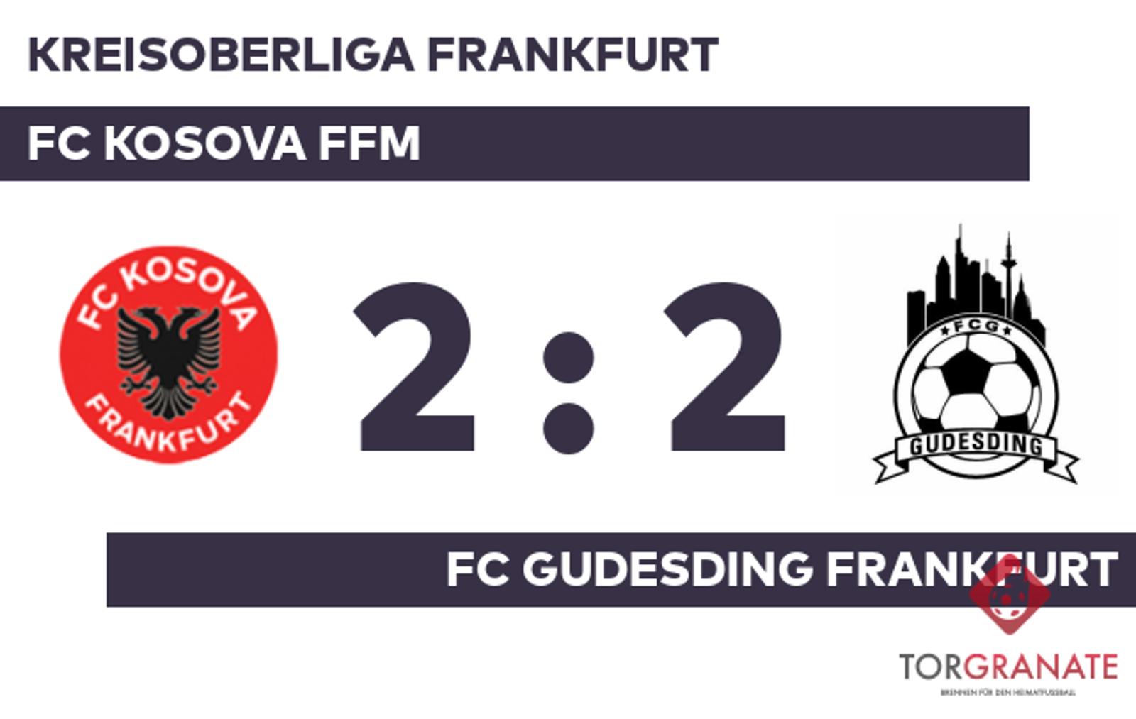 Auf die vermeintliche Siegerstraße brachte Leon Dashi sein Team in der 36. Minute. Einen Torerfolg in Halbzeit eins verbuchte lediglich FC Kosova Ffm, womit man eine knappe Führung mit in die Kabinen nahm. Alexander Root versenkte den Ball in der 55. Minute im Netz des Gastgebers. Frenklin Sefa traf zum 2:1 zugunsten von FC Kosova Ffm (68.). Mit seinem Treffer aus der 86. Minute bewahrte Marko Rimac seine Mannschaft vor der Niederlage und machte kurz vor dem Abpfiff das Remis perfekt. Letzten Endes wurde in der Begegnung von FC Kosova Ffm mit dem FC Gudesding Frankfurt kein Sieger gefunden.
