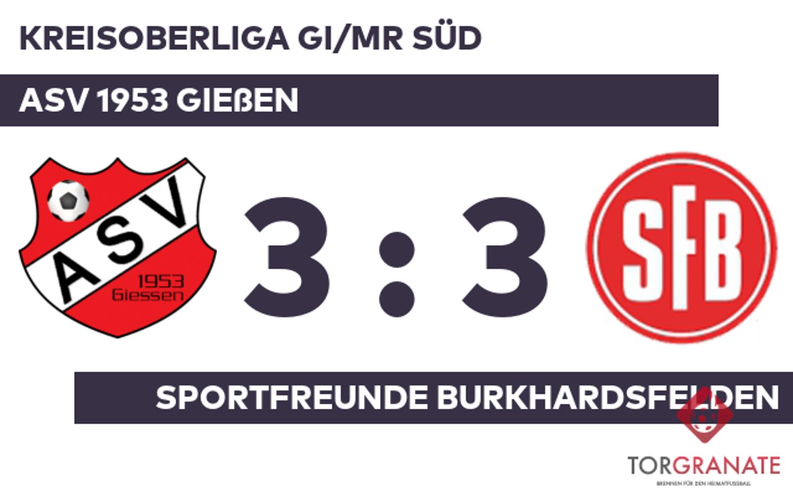Kreisoberliga GI/MR Süd: ASV 1953 Gießen – Sportfreunde Burkhardsfelden, 3:3 (1:2)