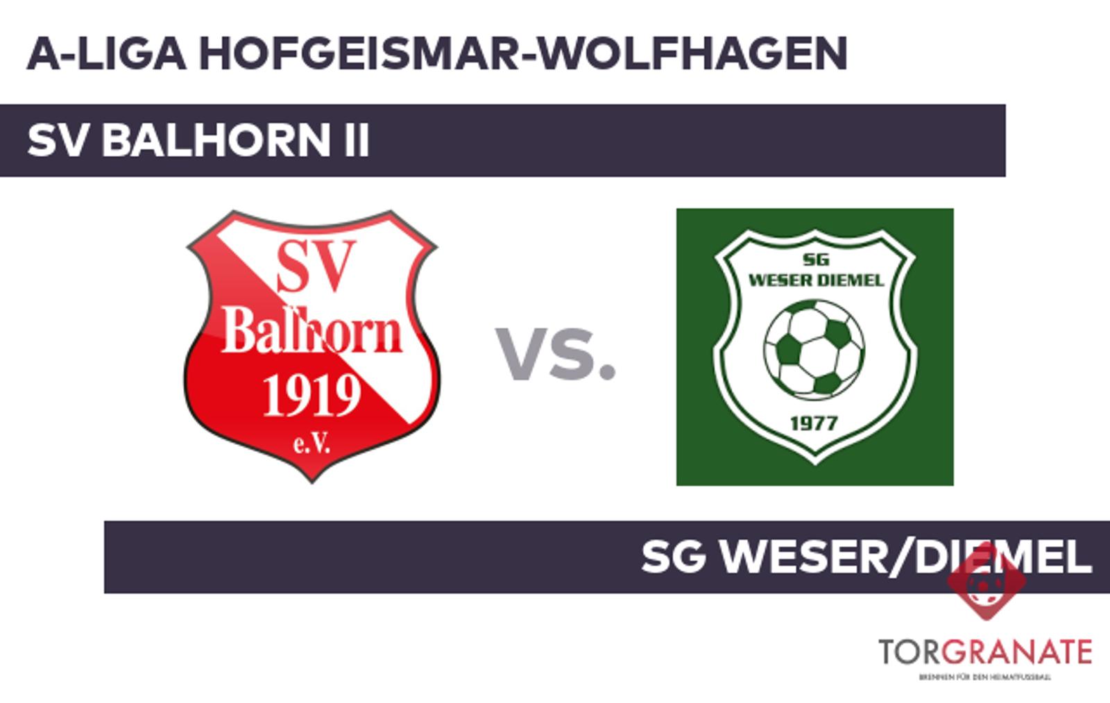 A-Liga Hofgeismar-Wolfhagen: SV Balhorn II – SG Weser/Diemel (Sonntag, 13:00 Uhr)
