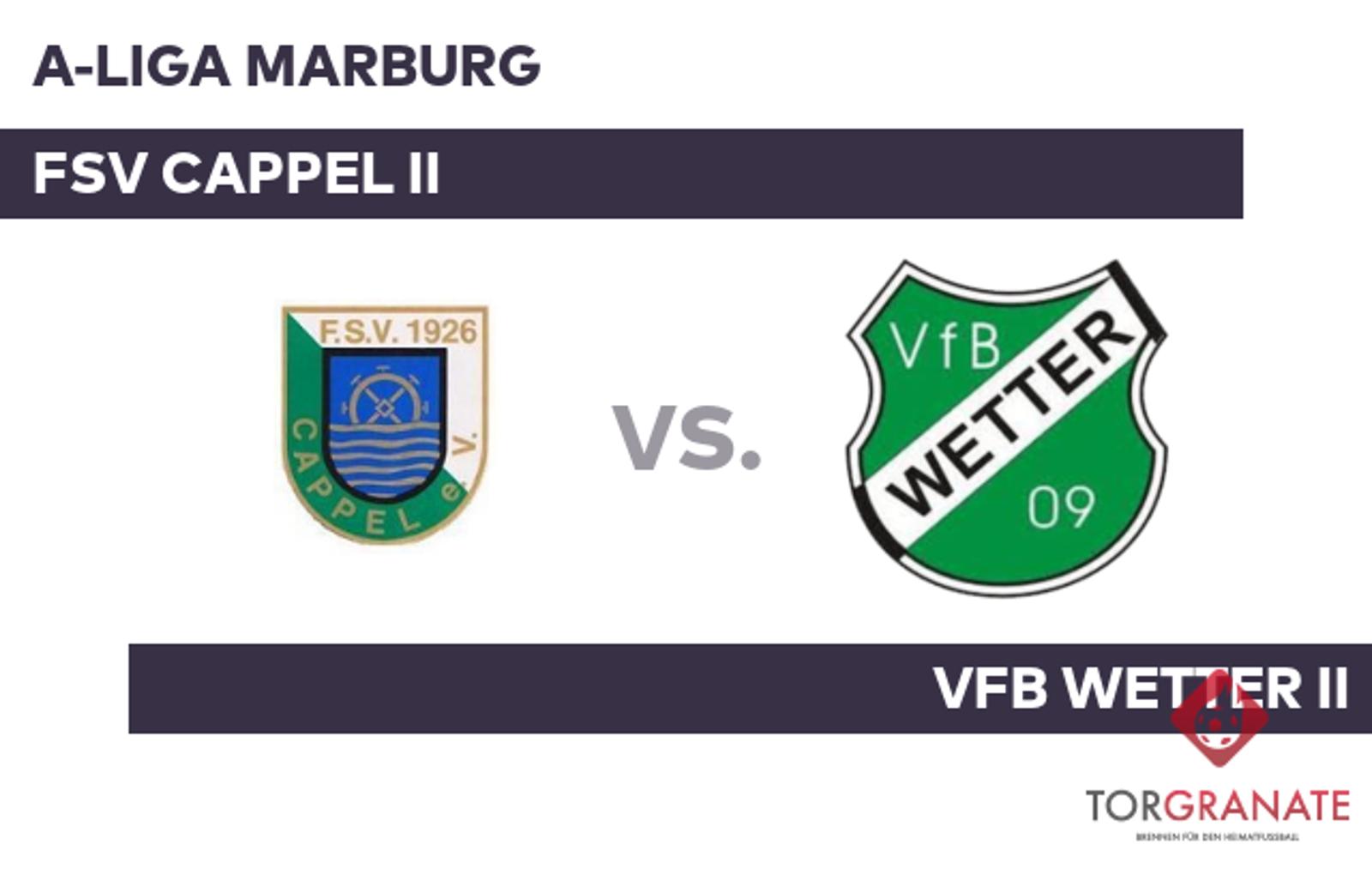 A-Liga Marburg: FSV Cappel II – VfB Wetter II (Sonntag, 13:00 Uhr)