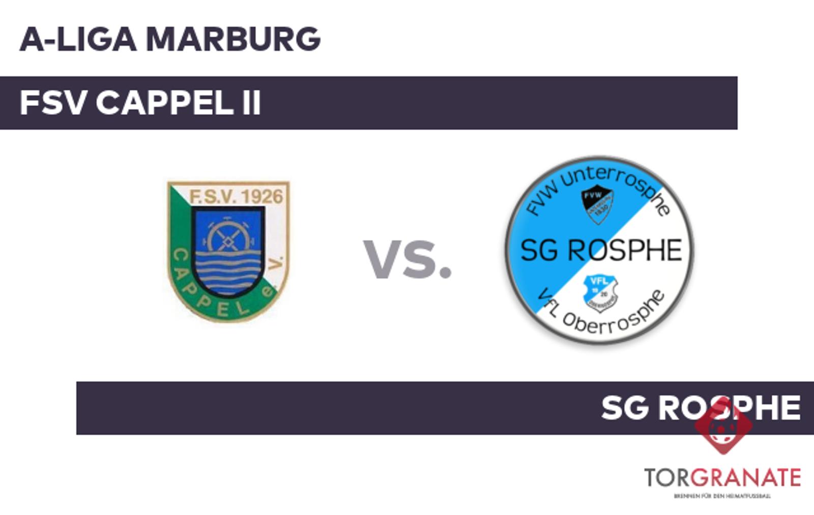 A-Liga Marburg: FSV Cappel II – SG Rosphe (Sonntag, 12:45 Uhr)