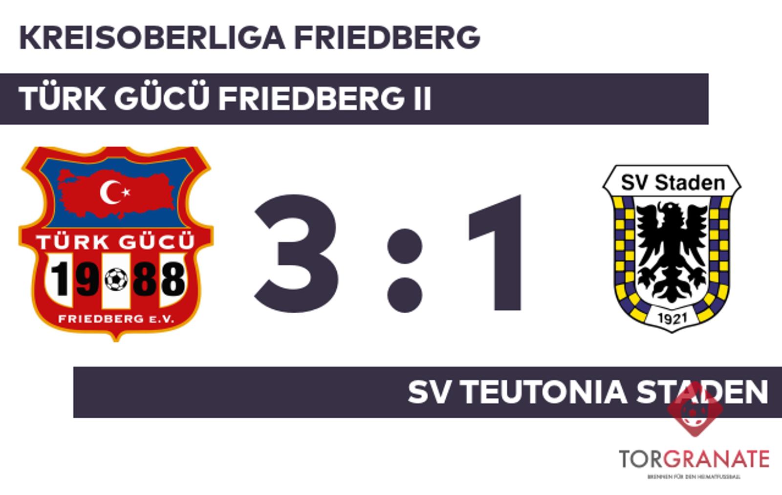 Kreisoberliga Friedberg: Türk Gücü Friedberg II – SV Teutonia Staden, 3:1 (2:1)
