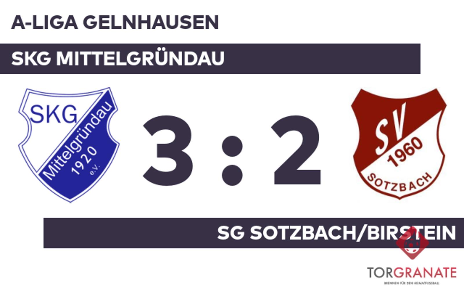 A-Liga Gelnhausen: SKG Mittelgründau – SG Sotzbach/Birstein, 3:2 (1:1)