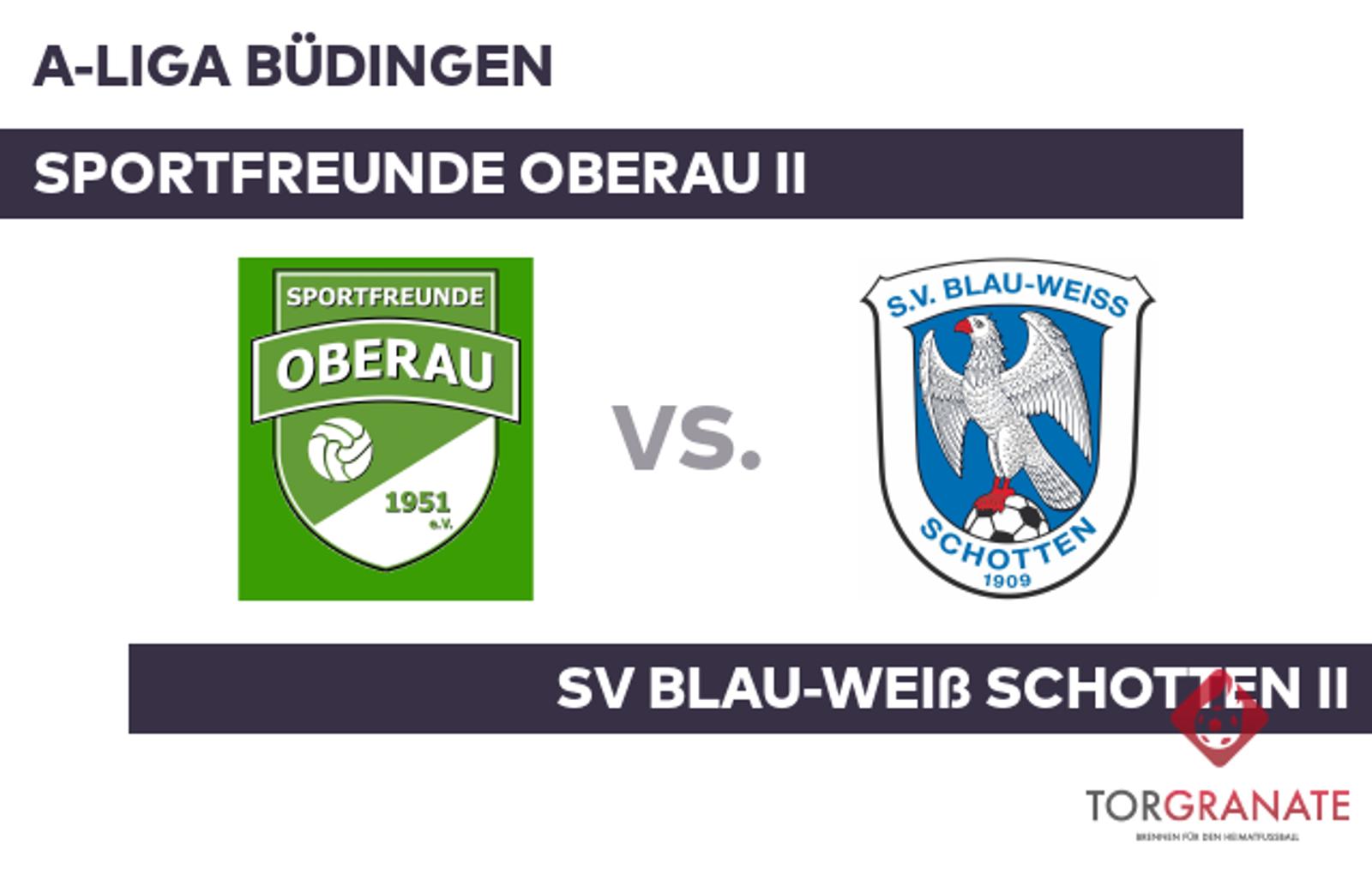 A-Liga Büdingen: Sportfreunde Oberau II – SV Blau-Weiß Schotten II (Sonntag, 13:00 Uhr)
