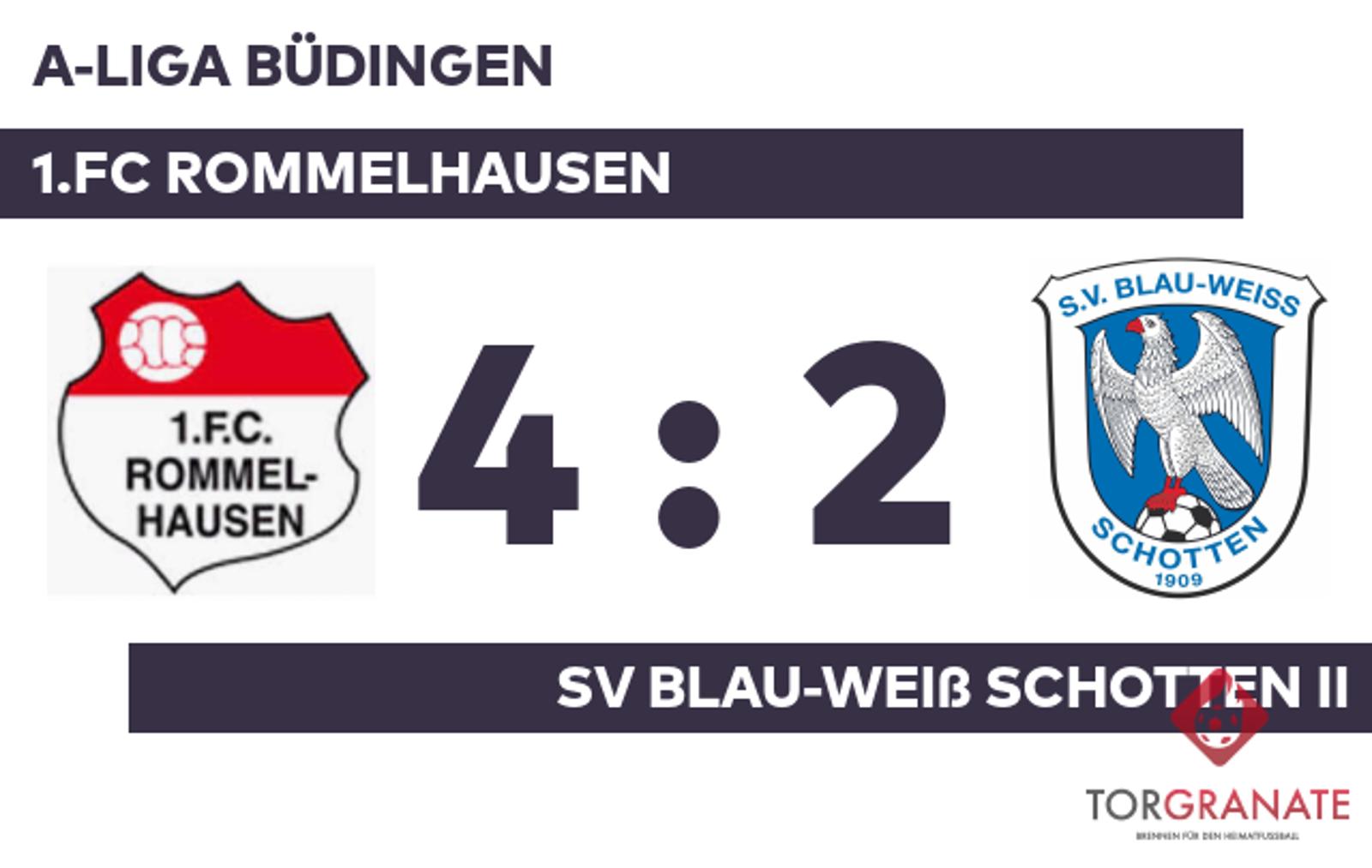 A-Liga Büdingen: 1.FC Rommelhausen – SV Blau-Weiß Schotten II, 4:2 (1:2)